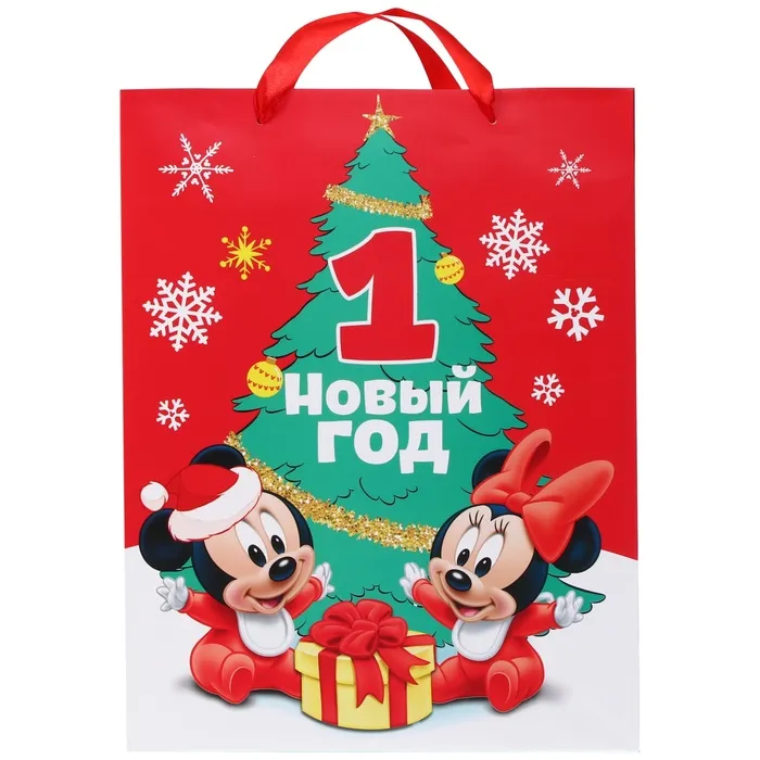 Пакет подарочный новогодний, 31х40х11.5 см, упаковка, Микки Маус — Характеристики