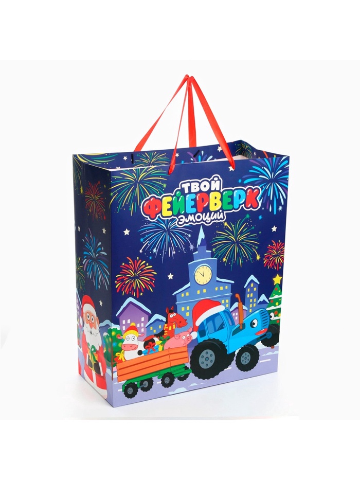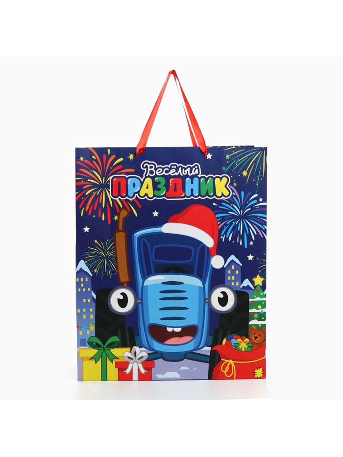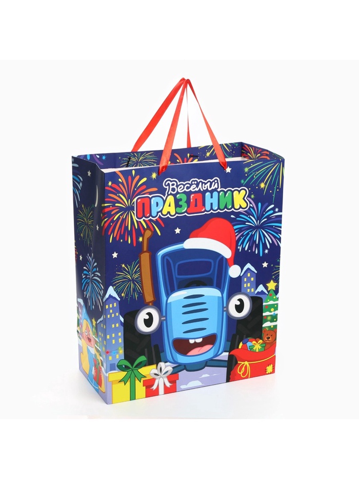 Пакет подарочный новогодний, 40 х 49 х 19 см, Синий трактор — Характеристики