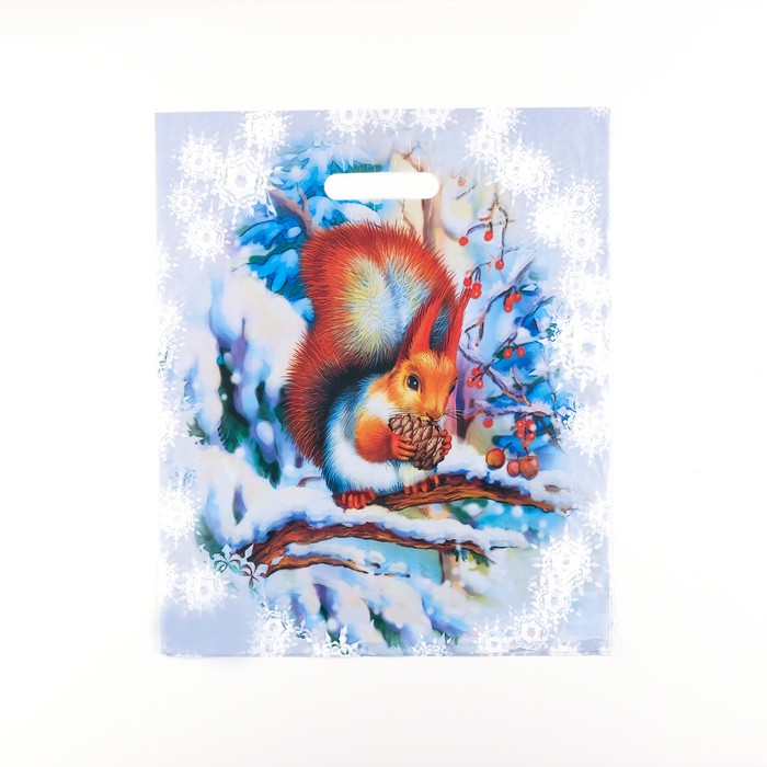 Пакет подарочный новогодний «Белочка», полиэтиленовый с вырубной ручкой, 36×43 см, 35 мкм — Характеристики