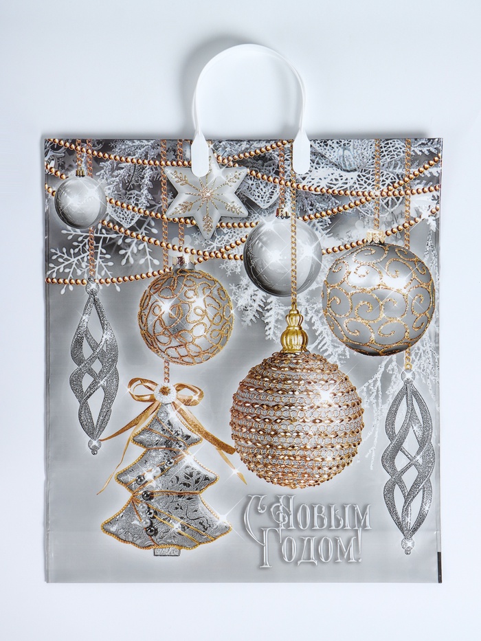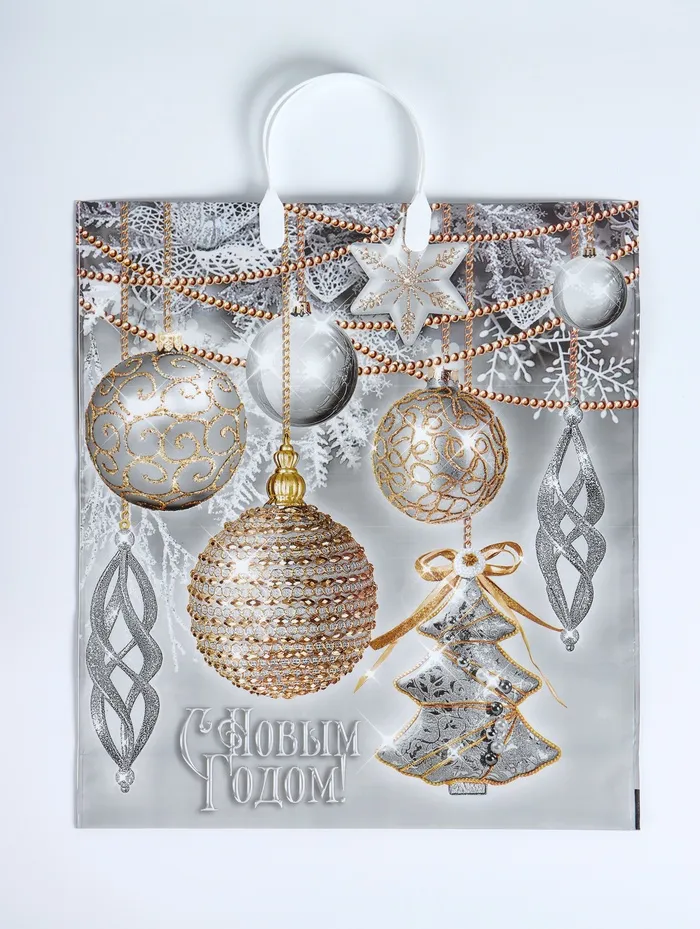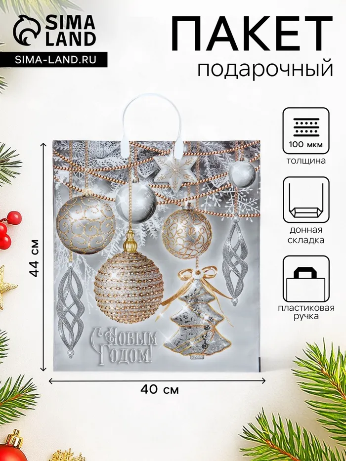 Пакет подарочный новогодний «Блики», полиэтиленовый с пластиковой ручкой, 40×44 см — Характеристики