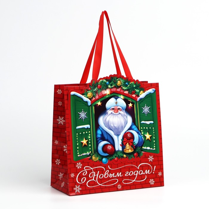 Пакет подарочный новогодний «Дедушка Мороз», 22 х 22 х 10 см
