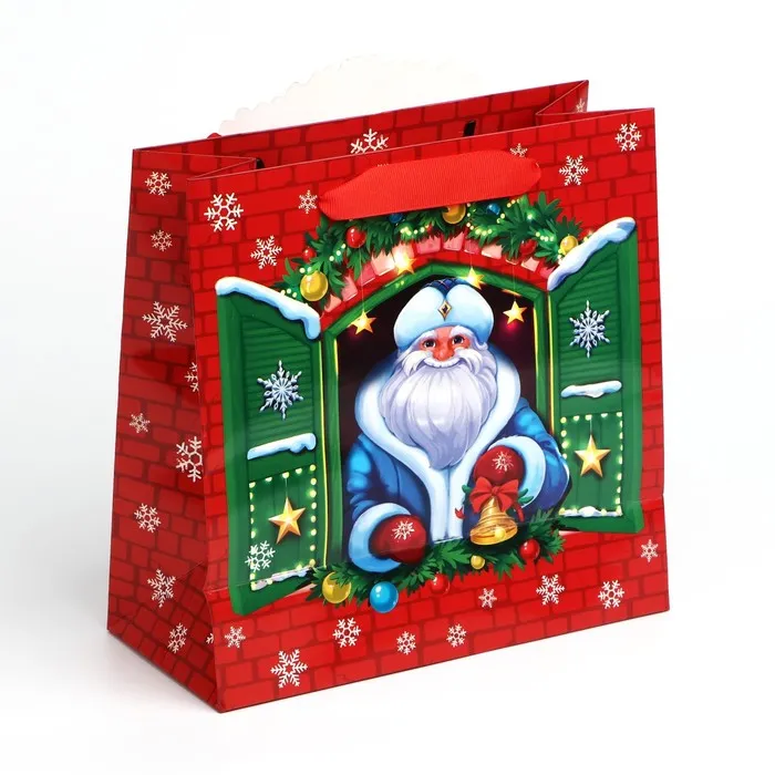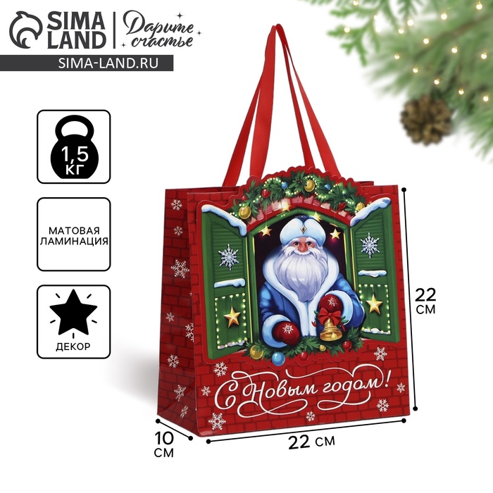 Пакет подарочный новогодний «Дедушка Мороз», 22 х 22 х 10 см — Характеристики