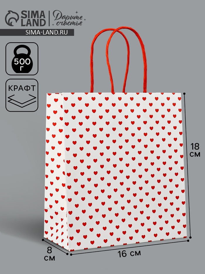 Пакет крафтовый «Красный горошек», бант, 16 х 8 х 18 см