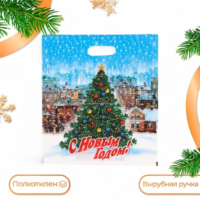 Пакет подарочный новогодний «Городская ёлка», полиэтиленовый с вырубной ручкой, 47×40 см — Характеристики