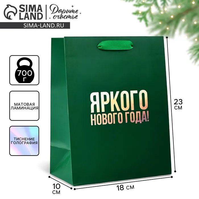 Пакет подарочный новогодний «Яркого Нового года», голография, MS 18 х 10 х 23 см — Характеристики