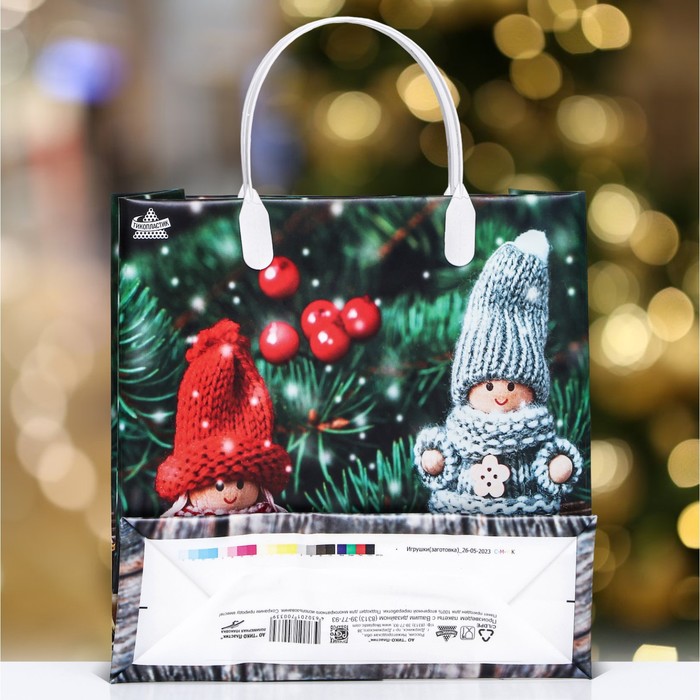 Яркий акцент для новогодних подарков! Подарочный пакет «Игрушки» — компактная упаковка из мягкого пластика с праздничным дизайном. Ламинированная поверхность и боковые складки делают его удобным для небольших, но ценных презентов.