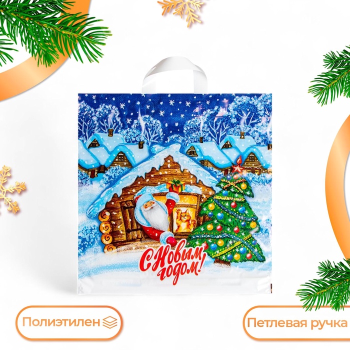 Пакет подарочный новогодний «Избушка», полиэтиленовый с петлевой ручкой, 40×42 см — Характеристики