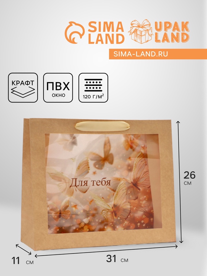 Размеры пакета делают его универсальным для упаковки подарков среднего размера, а удобные ручки обеспечивают комфортную переноску. Внутреннее пространство пакета достаточно вместительное, чтобы разместить в нем даже объемные предметы, при этом окно сохраняет элегантный внешний вид упаковки.