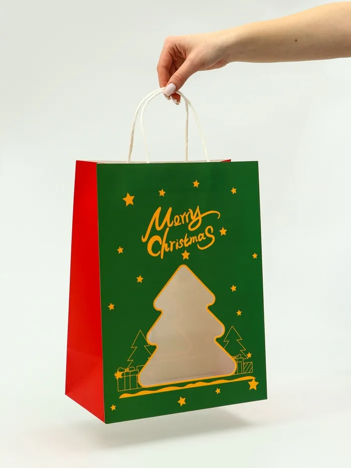 Пакет подарочный с окном новогодний имеет размеры 26 х 32 х 12 см — это идеальное решение для создания праздничной упаковки, которая не только надежно защитит ваш подарок, но и добавит ему особого шарма. Этот пакет был специально разработан для того, чтобы подчеркнуть важность момента и создать атмосферу новогоднего волшебства.
