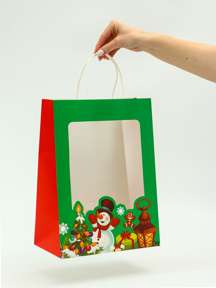 Пакет подарочный с окном новогодний имеет размеры 26 х 32 х 12 см — это идеальное решение для создания праздничной упаковки, которая не только надежно защитит ваш подарок, но и добавит ему особого шарма. Этот пакет был специально разработан для того, чтобы подчеркнуть важность момента и создать атмосферу новогоднего волшебства.