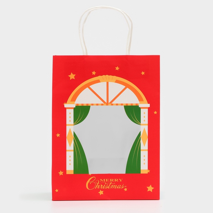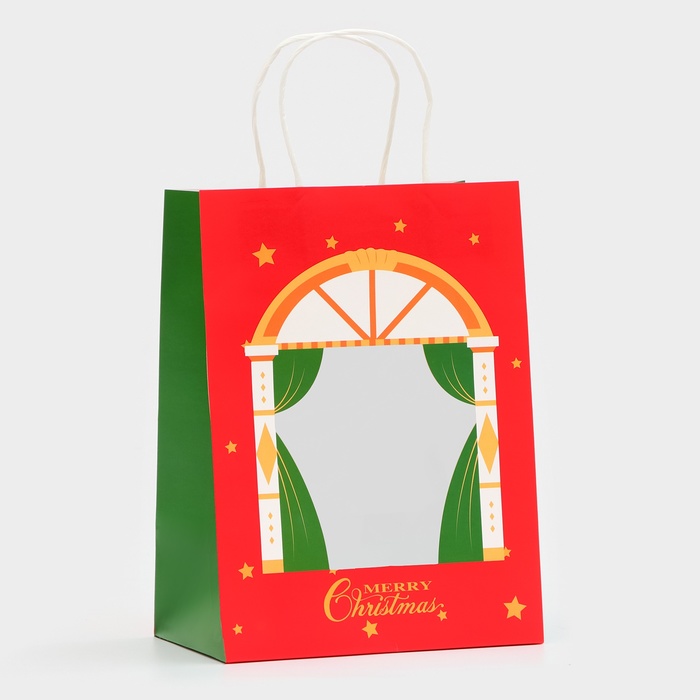 Пакет подарочный новогодний крафт с окном «Театр» 19×26×13 см — Характеристики