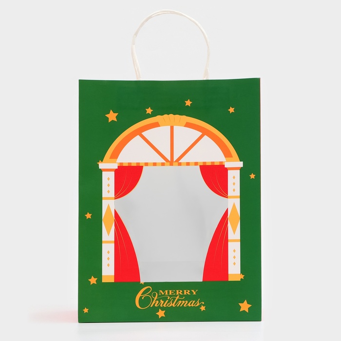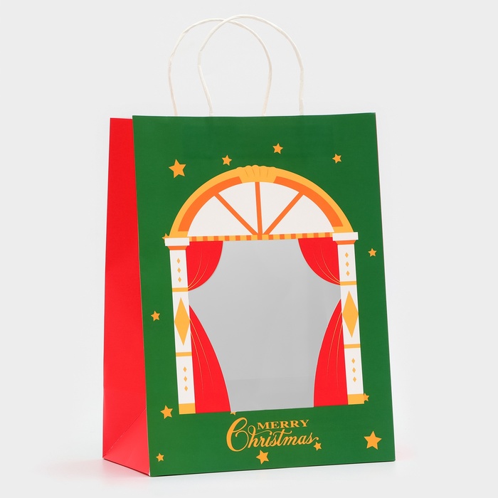 Пакет подарочный новогодний крафт с окном «Театр» 26×35×16 см — Характеристики