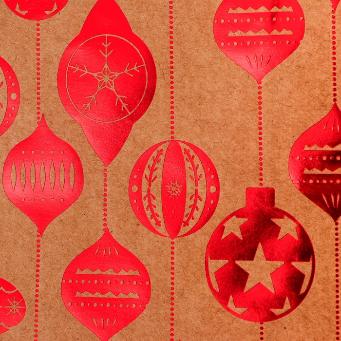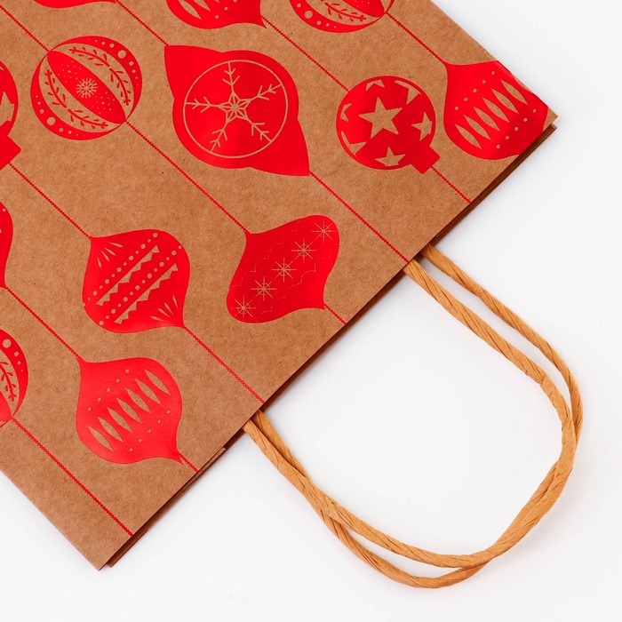 Пакет подарочный новогодний, крафт с тиснением, круглая ручка, «Ёлочные игрушки» 21×27×11 см, 120 г — Характеристики