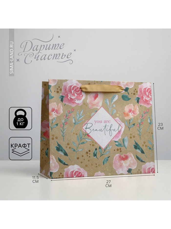 - Крафт-материал придает пакету естественный и экологичный вид, что делает его отличным выбором для тех, кто ценит натуральные материалы и заботится о природе.