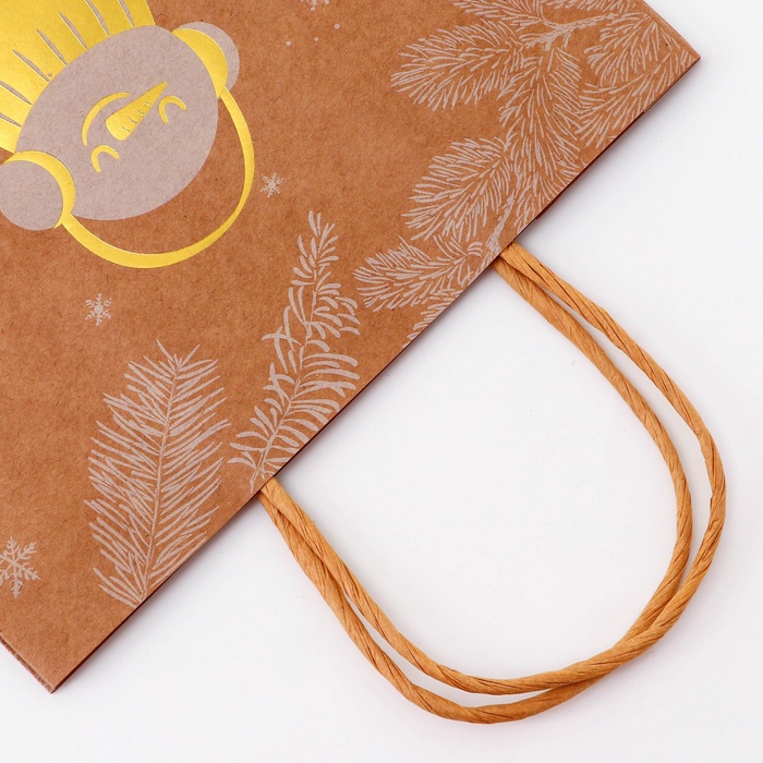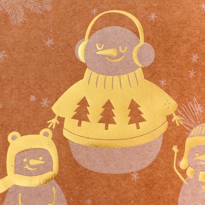 Пакет подарочный новогодний, крафт с золотым тиснением, «Снеговик» круглая ручка, 21×27×11 см, 120 г — Характеристики