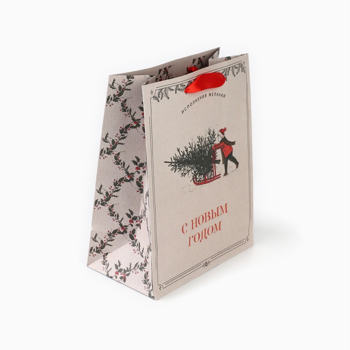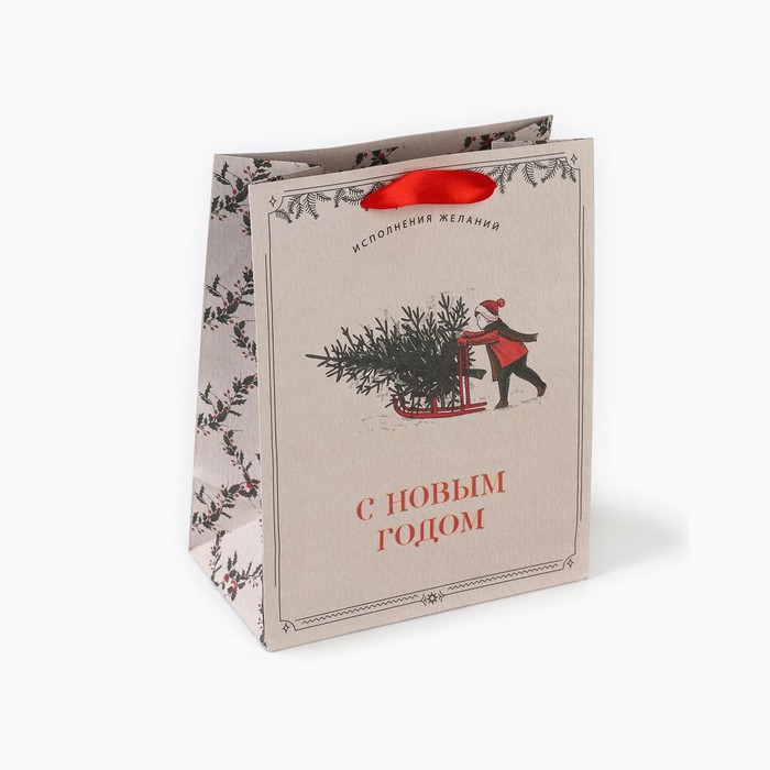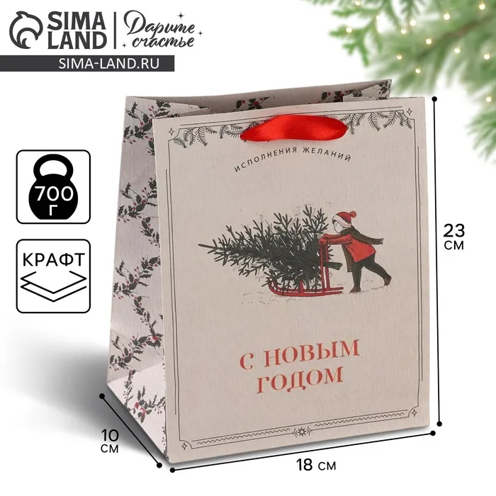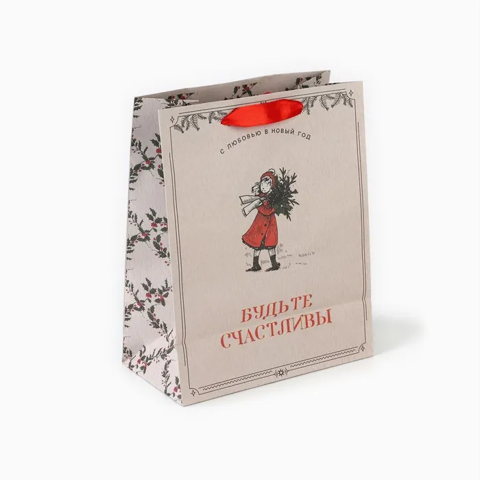 Пакет подарочный новогодний крафтовый «Будьте счастливы», MS 18 х 23 х 10 см — Характеристики
