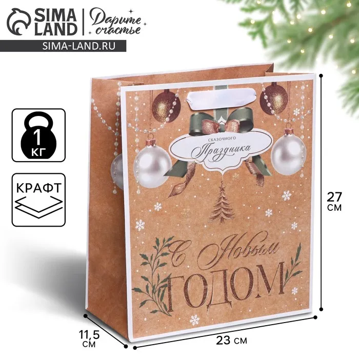 Пакет подарочный новогодний крафтовый «Дарю тебе», ML 23 х 27 х 11.5 см — Характеристики