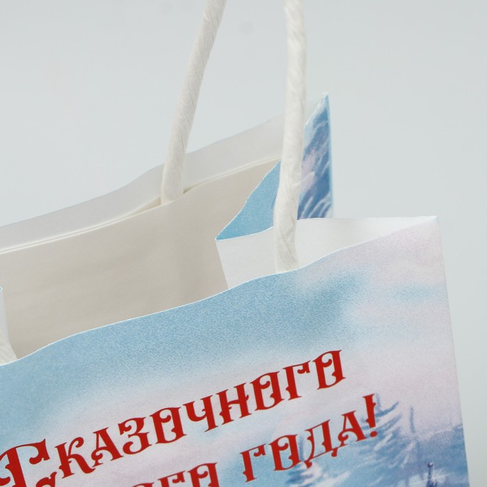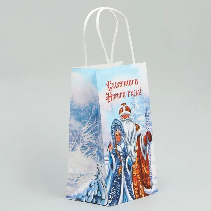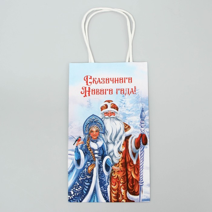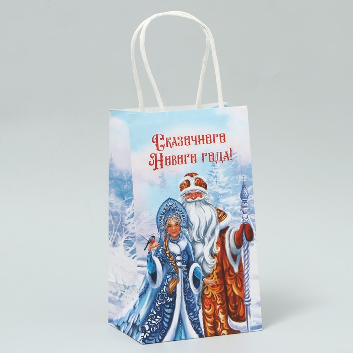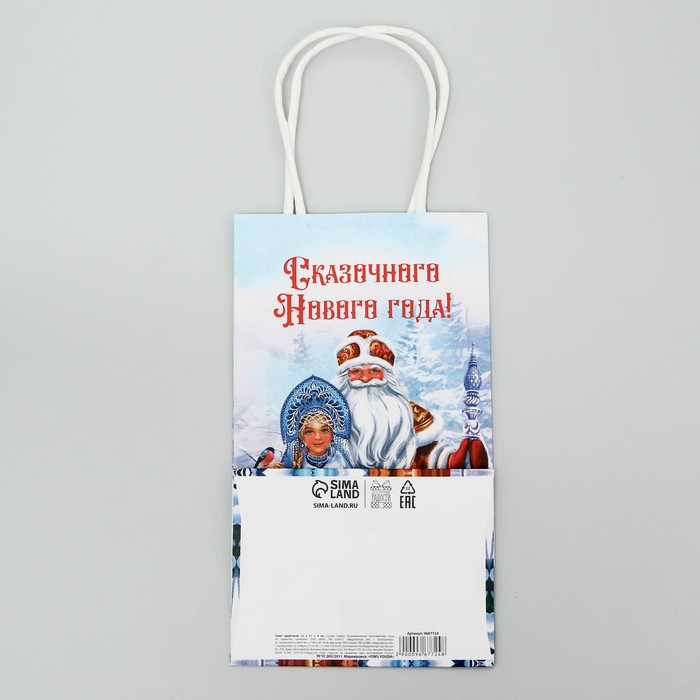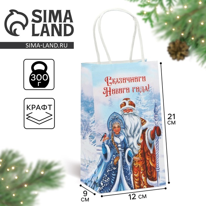 Пакет подарочный новогодний крафтовый «Дед Мороз и Снегурочка», 12 х 21 х 9 см — Характеристики
