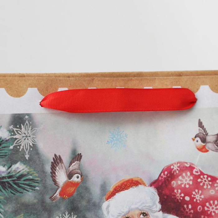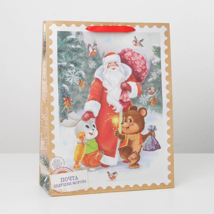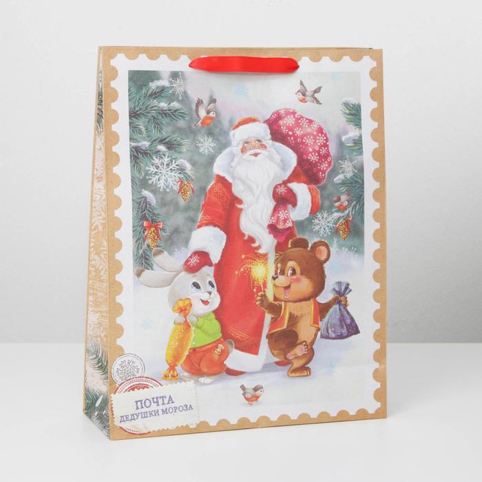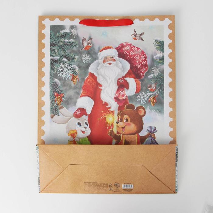 Пакет подарочный новогодний крафтовый «Дедушка мороз и зверята», L 31×40×11.5 см — Характеристики
