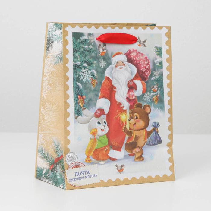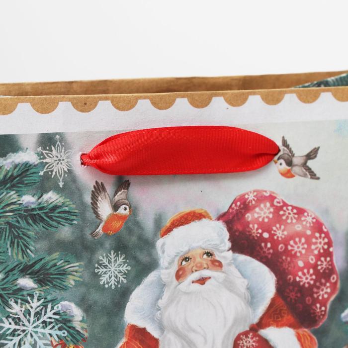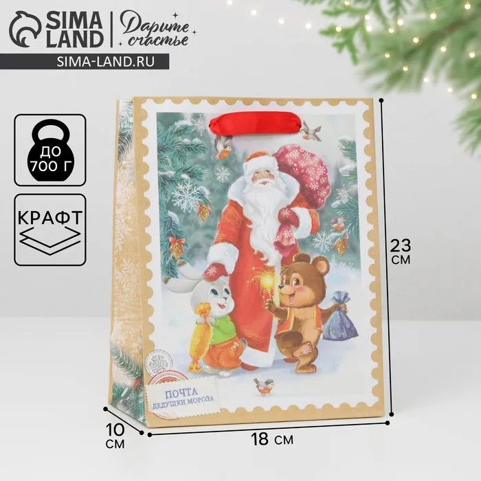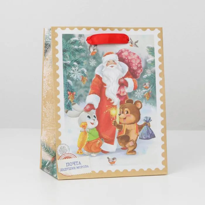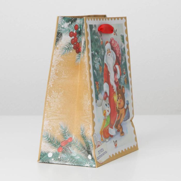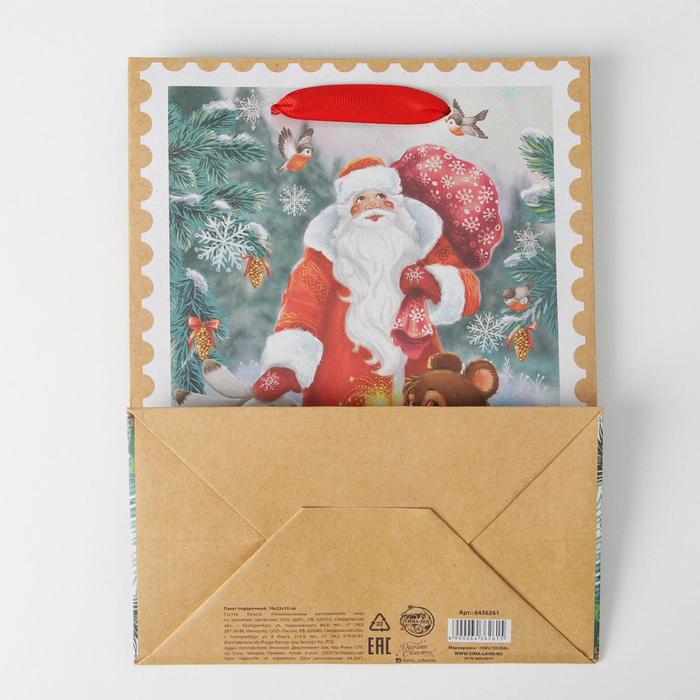 Пакет подарочный новогодний крафтовый «Дедушка мороз и зверята», MS 18 х 23 х 10 см — Характеристики