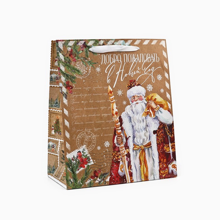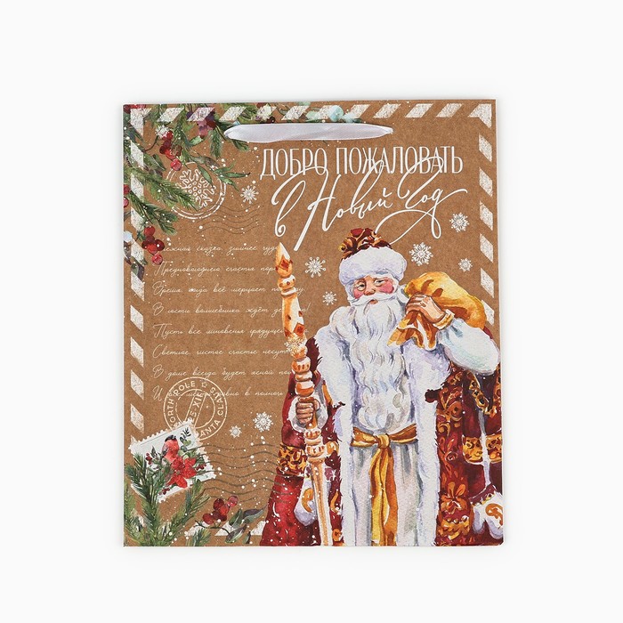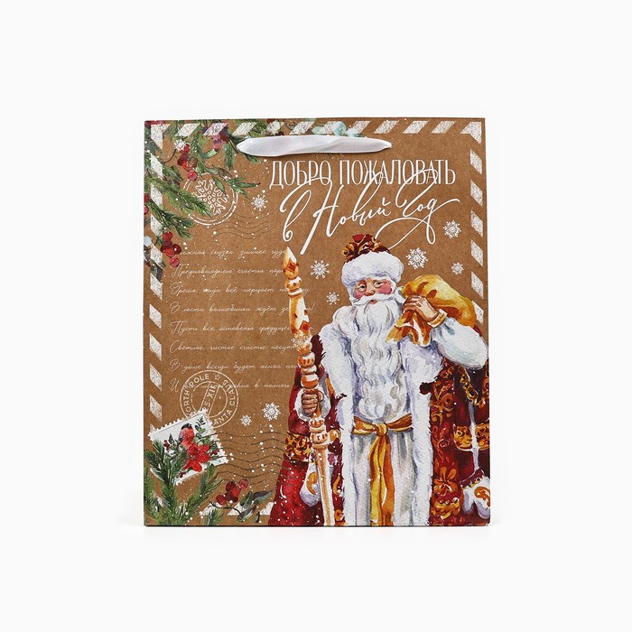 Пакет подарочный новогодний крафтовый «Добро пожаловать в Новый год», ML 23 х 27 х 11.5 см — Характеристики