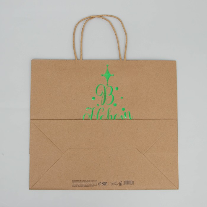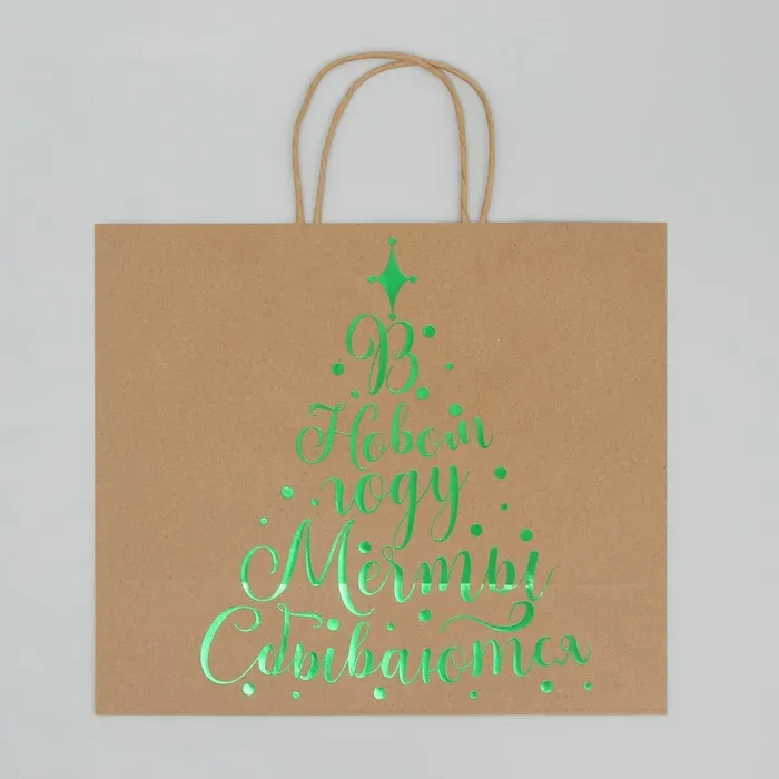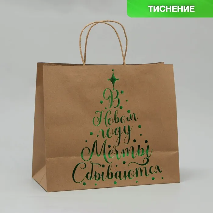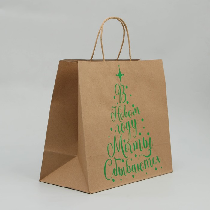 Пакет подарочный новогодний крафтовый Dreams come true, 32 х 28 х 15 см — Характеристики