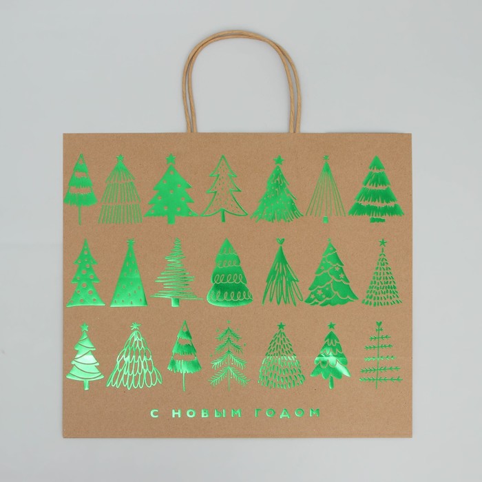 Пакет подарочный новогодний крафтовый Forest, 32 х 28 х 15 см — Характеристики
