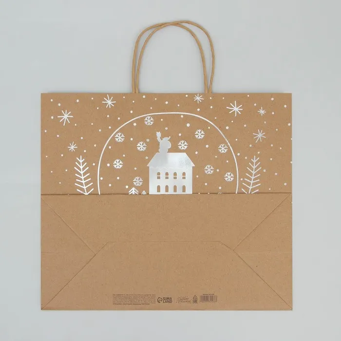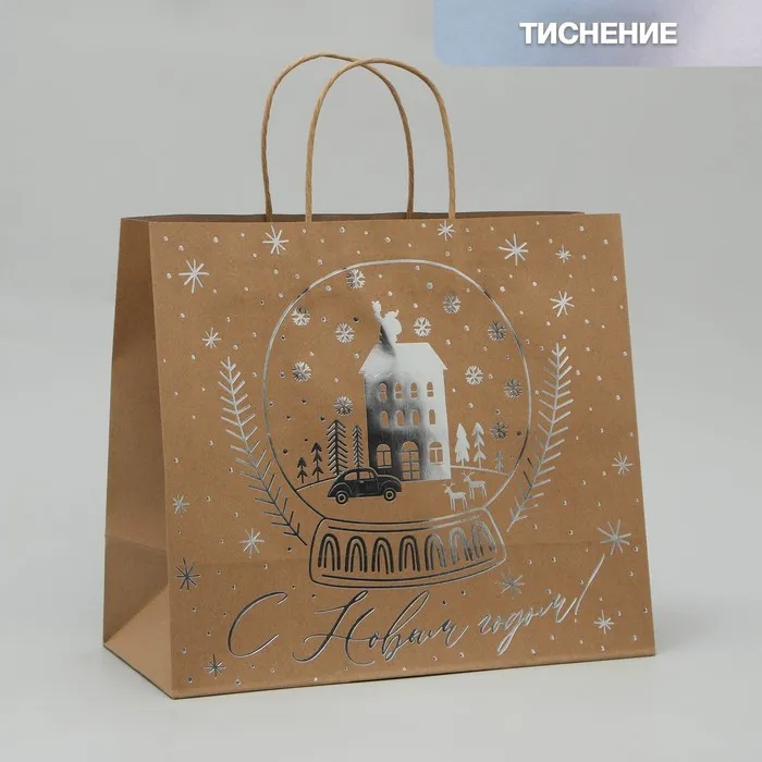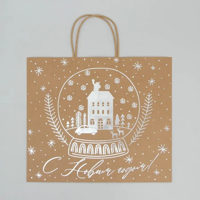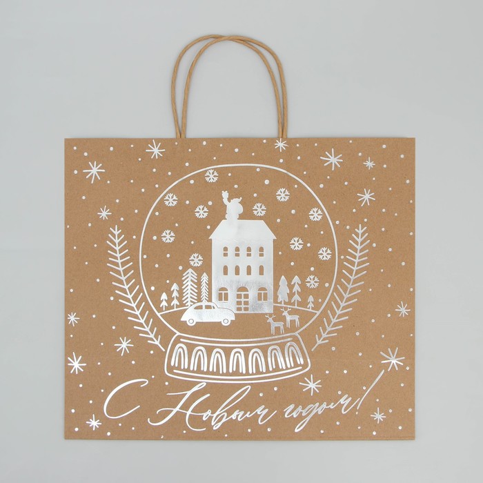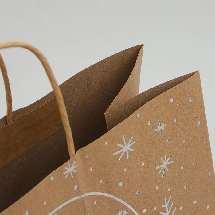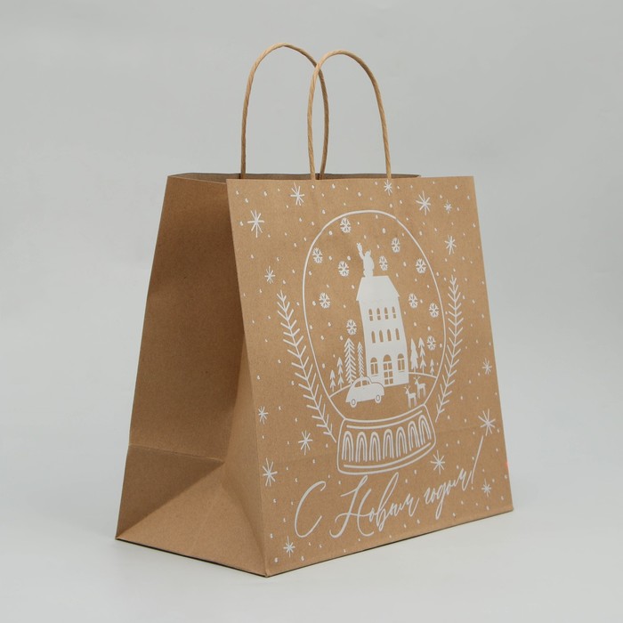 Пакет подарочный новогодний крафтовый Happy New Year, 32 х 28 х 15 см — Характеристики