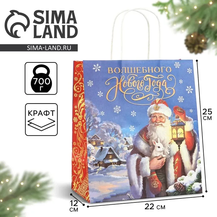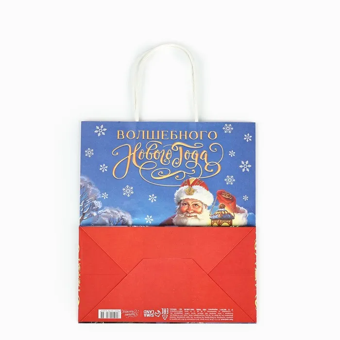 Пакет подарочный новогодний крафтовый «Яркого нового года», 22 х 12 х 25 см — Характеристики