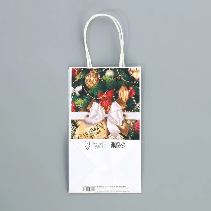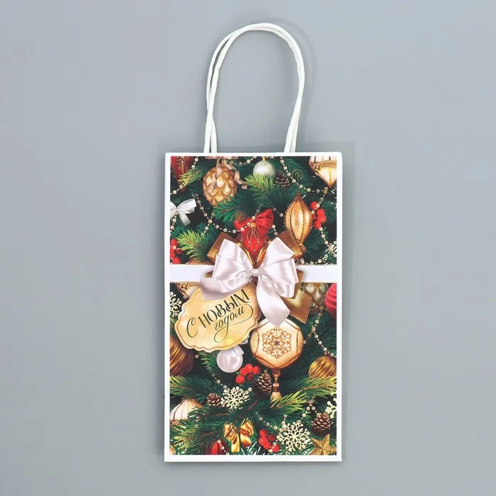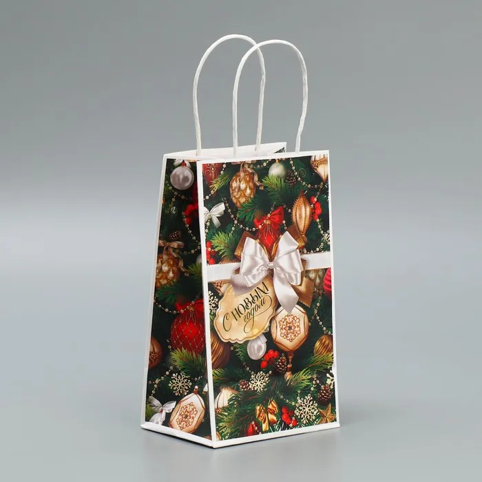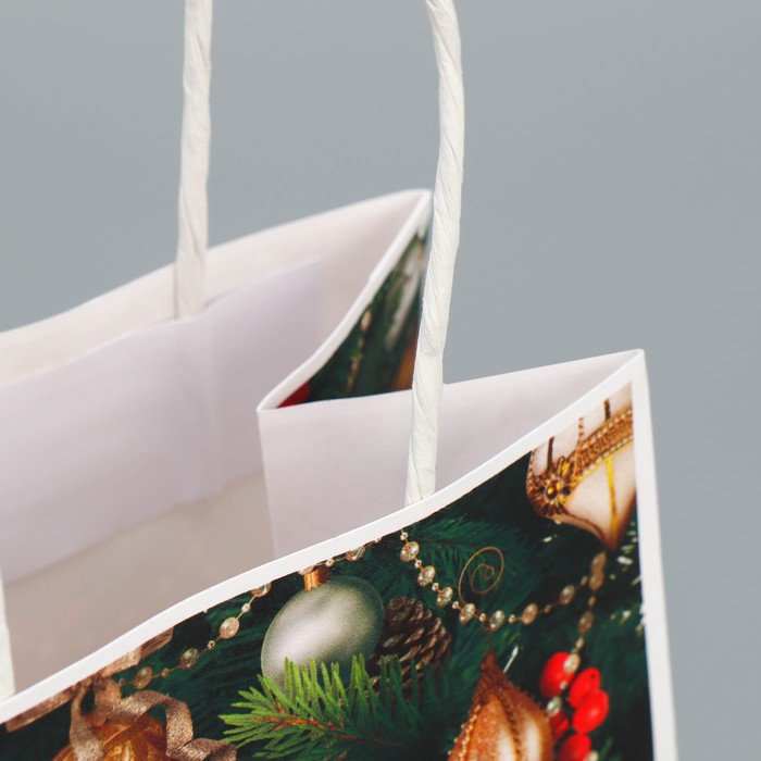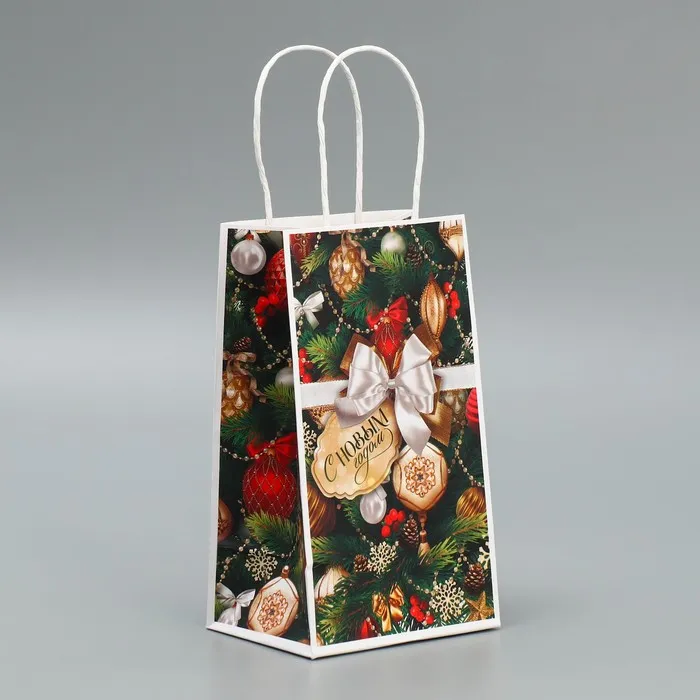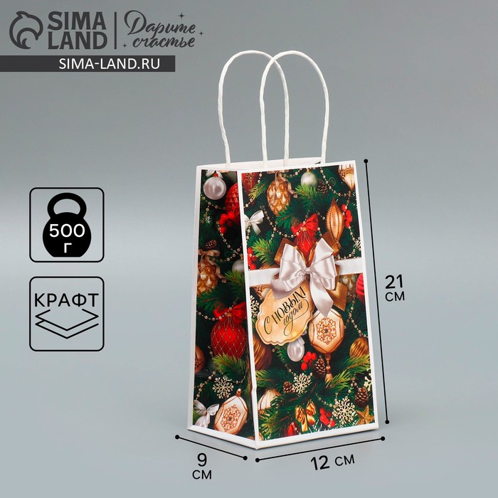 Пакет подарочный новогодний крафтовый «Игрушки», 12 х 21 х 9 см — Характеристики