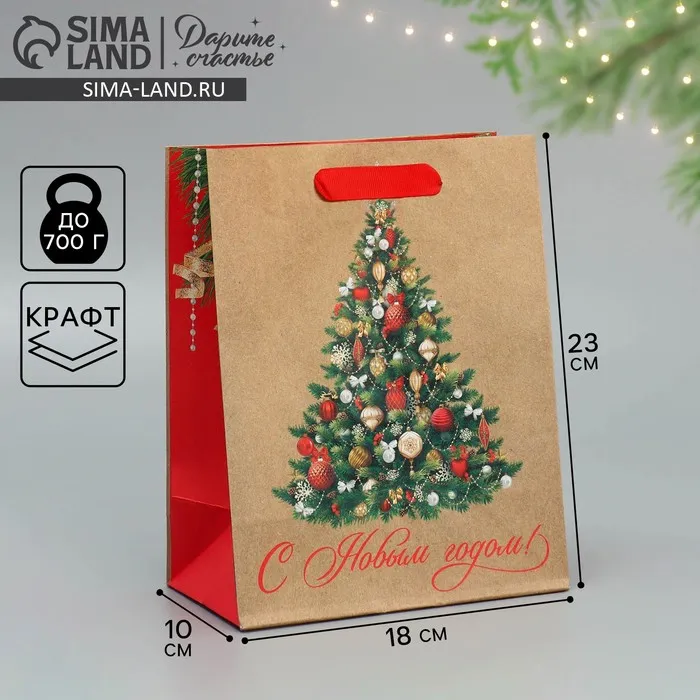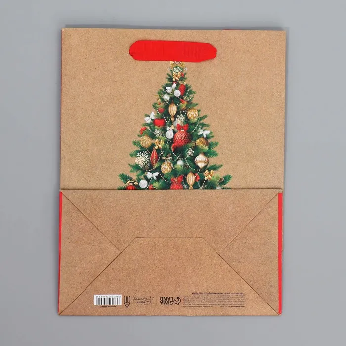 Пакет подарочный новогодний крафтовый «Ёлочка», MS 18 х 23 х 10 см — Характеристики