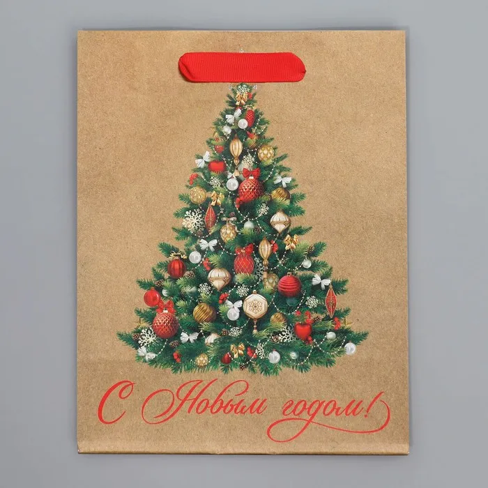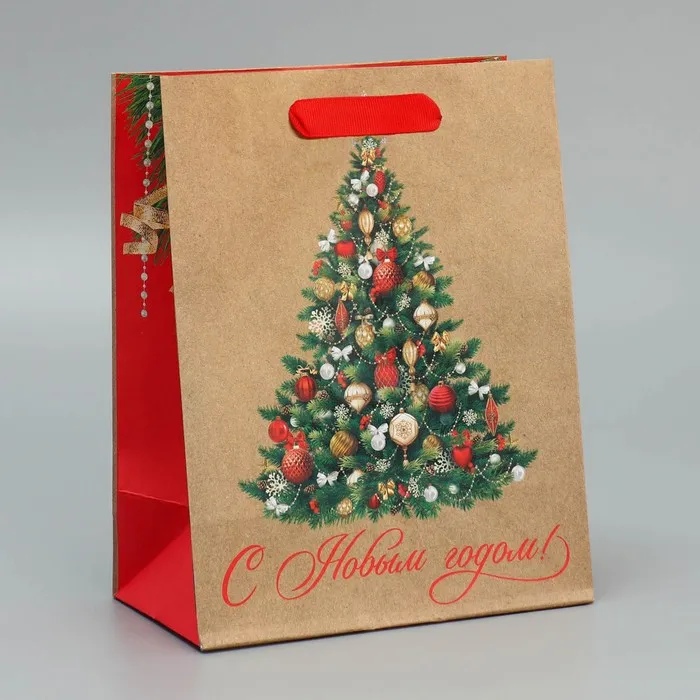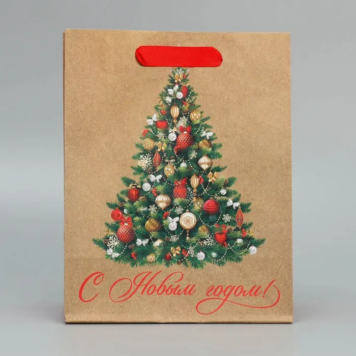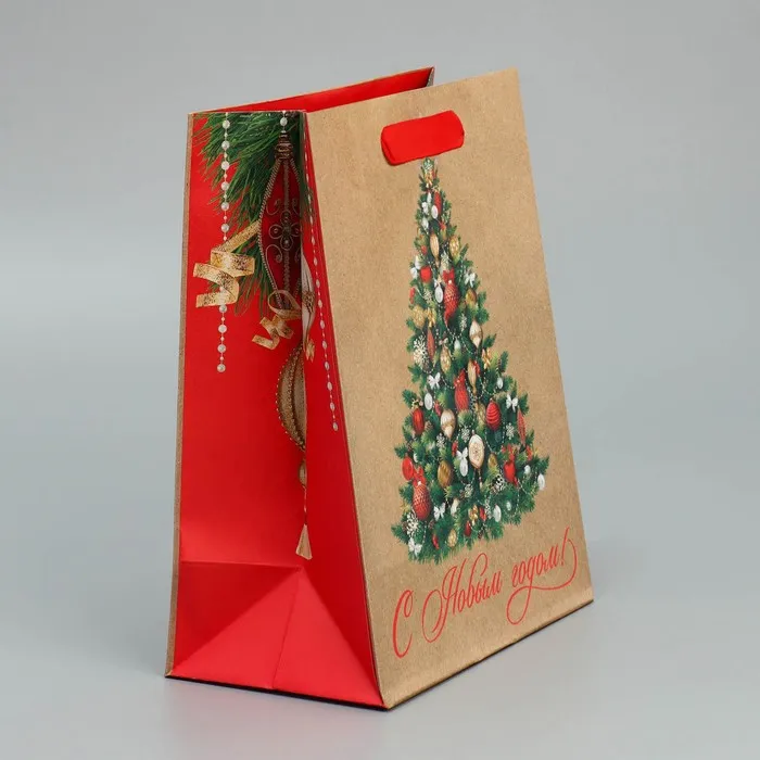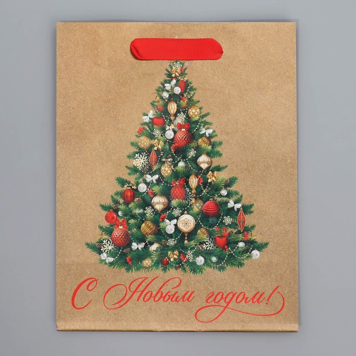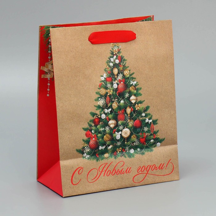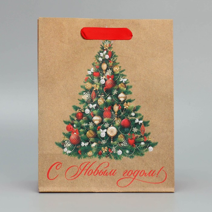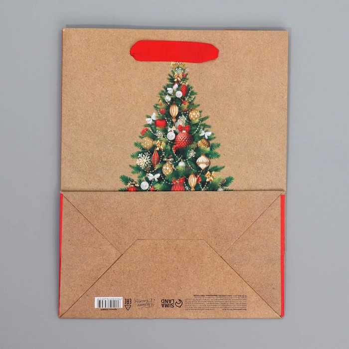 Пакет подарочный новогодний крафтовый «Ёлочка», MS 18 х 23 х 10 см
