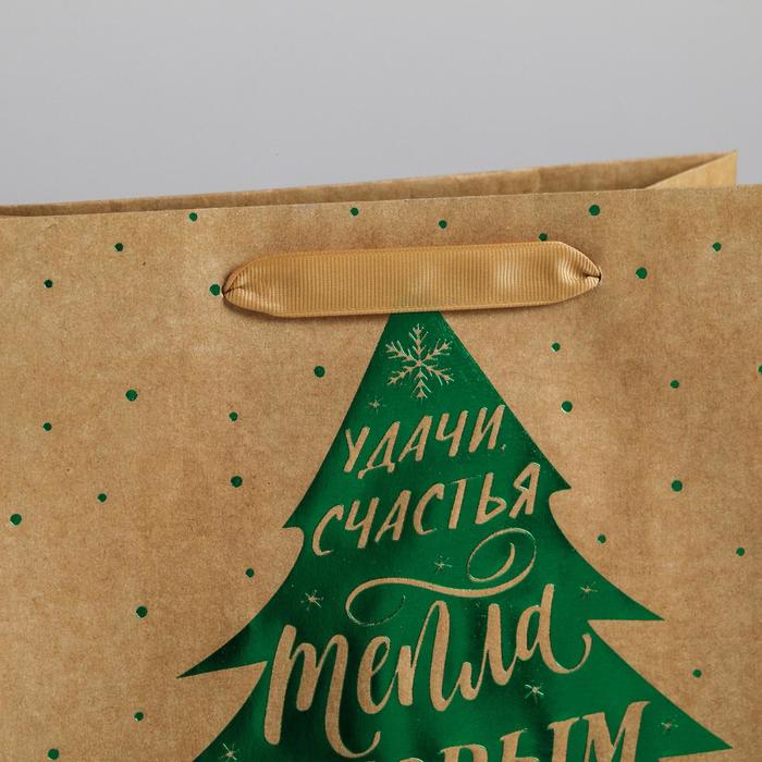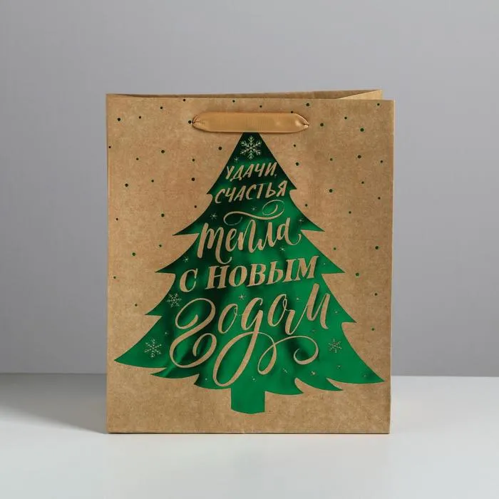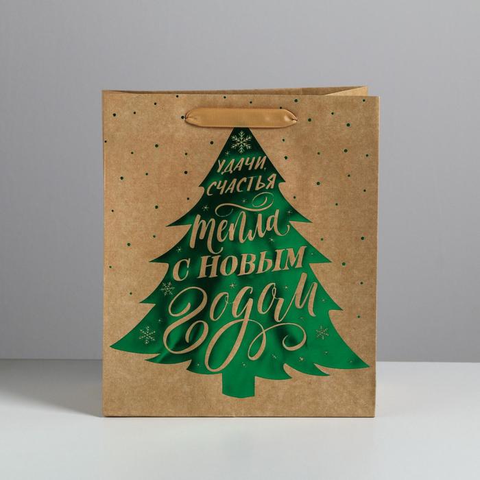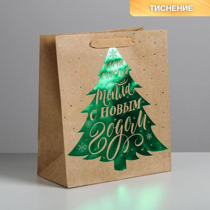 Пакет подарочный новогодний крафтовый «Ёлочка нарядная», ML 23 х 27 х 11.5 см — Характеристики