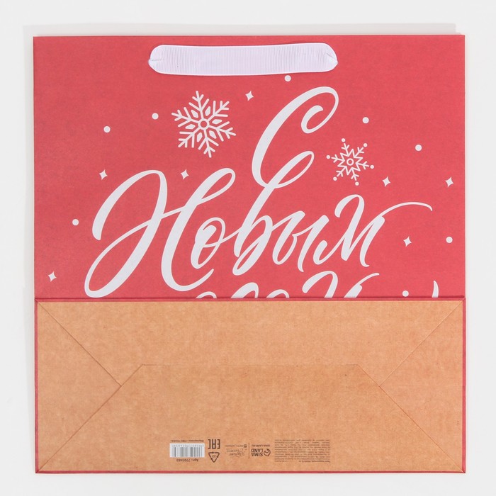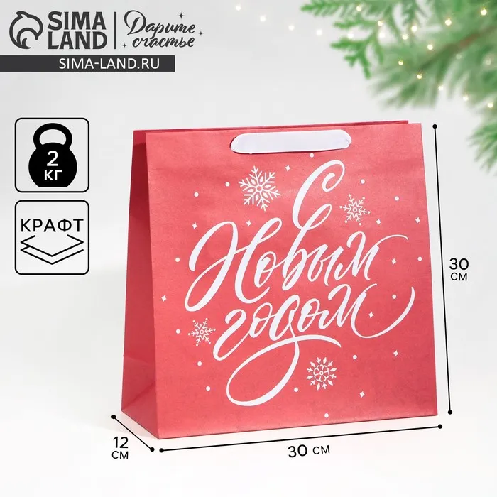 Пакет подарочный новогодний крафтовый квадратный «Новогодний», 30 х 30 х 12 см — Характеристики