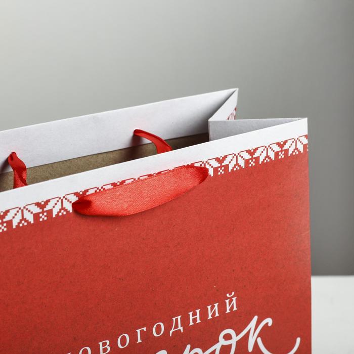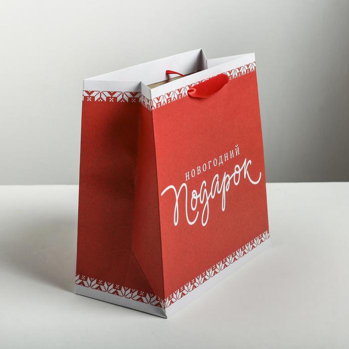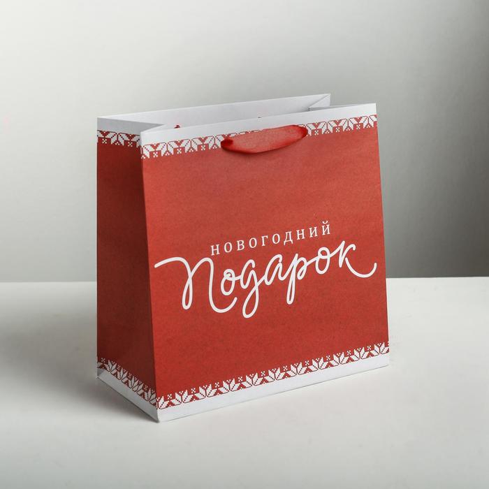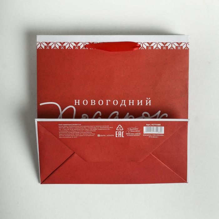 Пакет подарочный новогодний крафтовый квадратный «Новогодний подарок», 22 х 22 х 11см — Характеристики