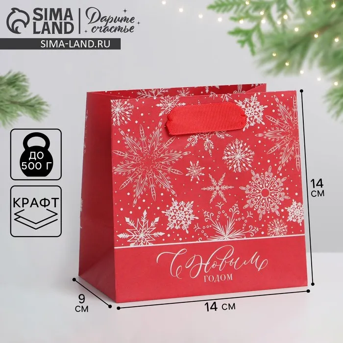 Пакет подарочный новогодний крафтовый квадратный «Подарок для тебя», 14 х 14 х 9 см — Характеристики