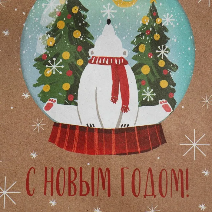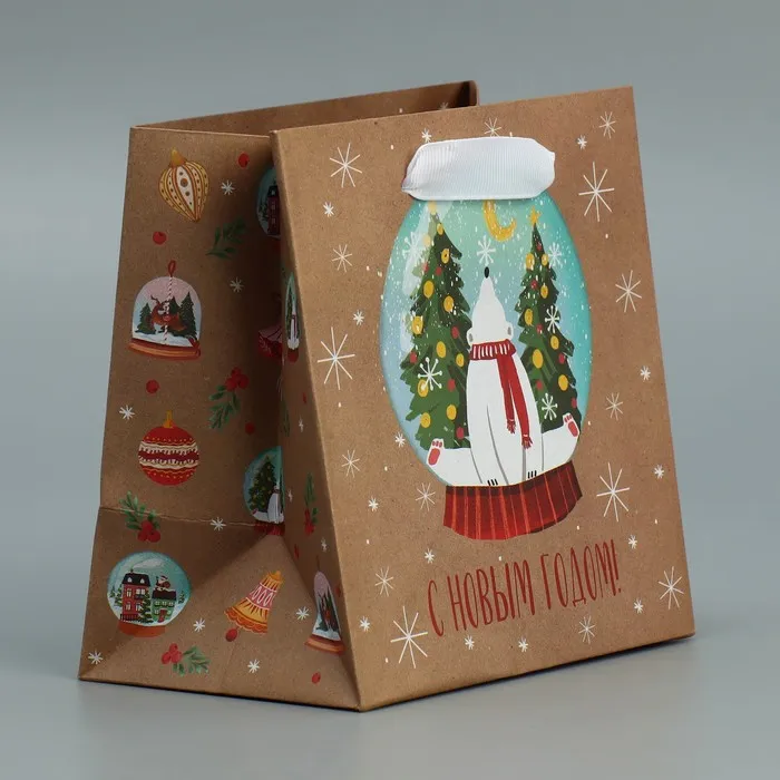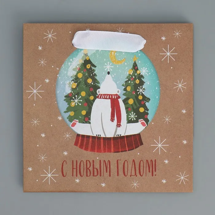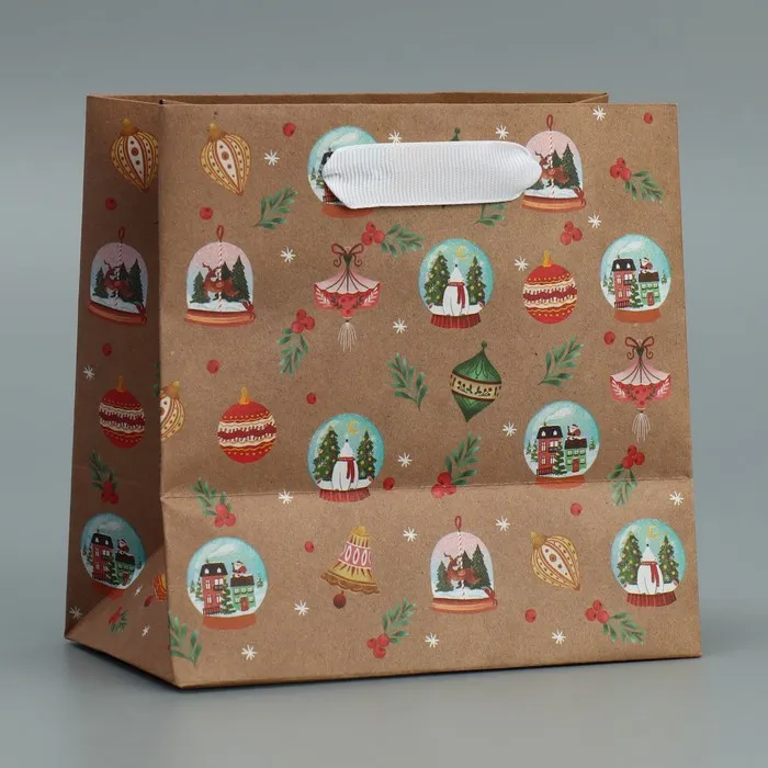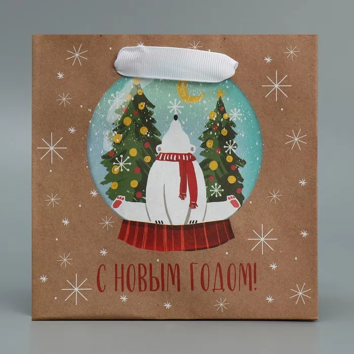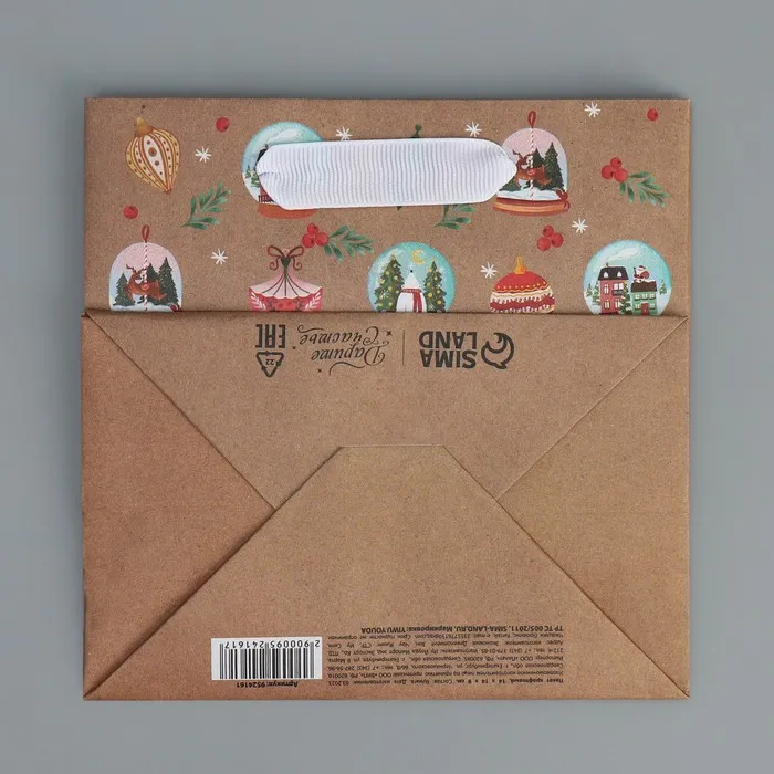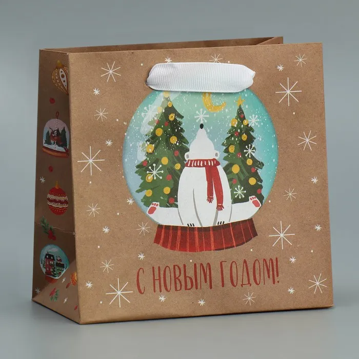 Пакет подарочный новогодний крафтовый квадратный «С новым годом», 14×14×9 см — Характеристики