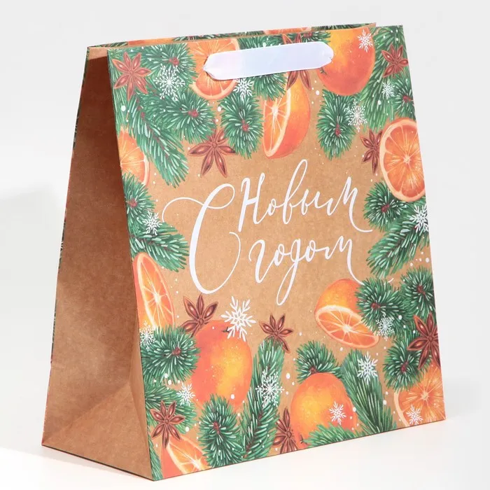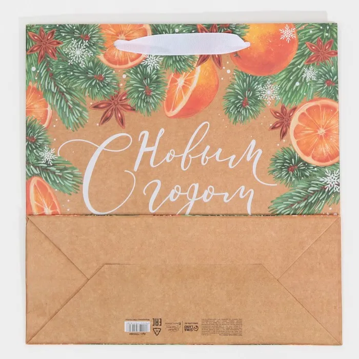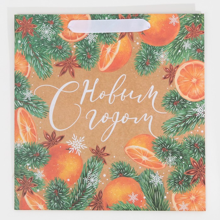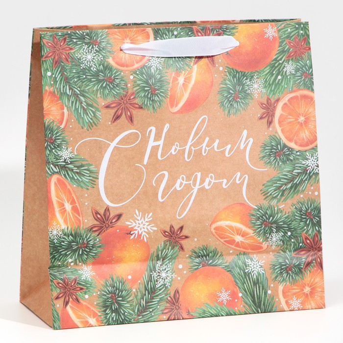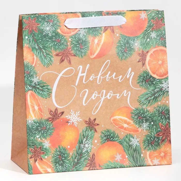 Пакет подарочный новогодний крафтовый квадратный «С Новым годом», 30 х 30 х 12 см — Характеристики