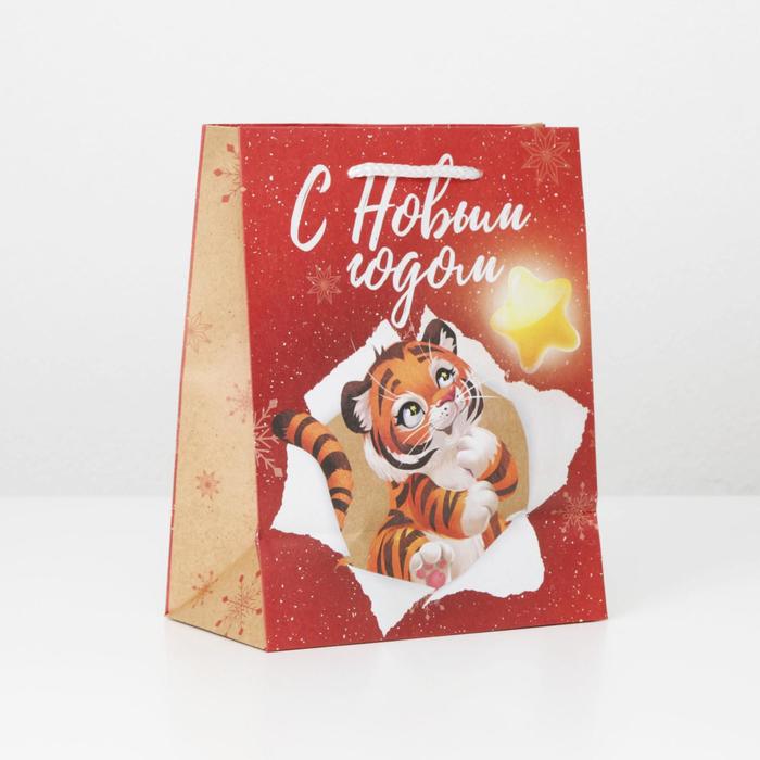 Пакет подарочный новогодний крафтовый «Лови звезду», MS 18 х 23 х 10 см — Характеристики