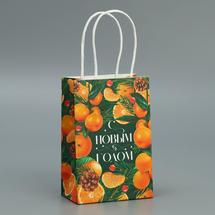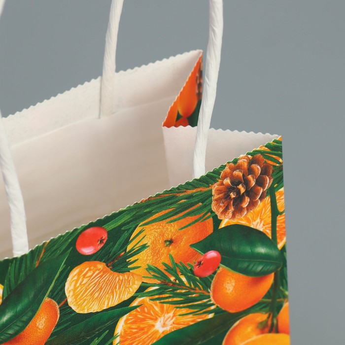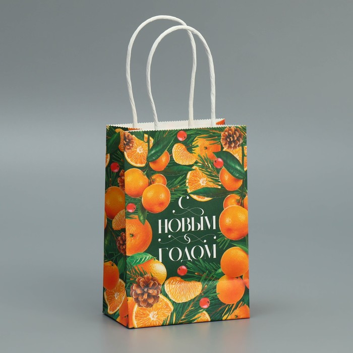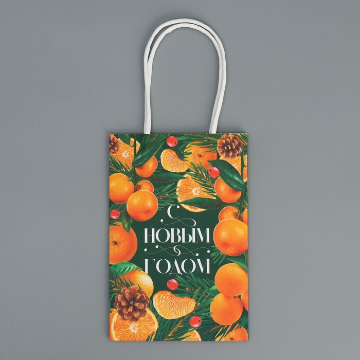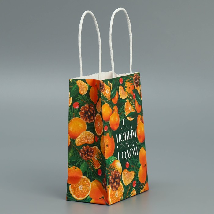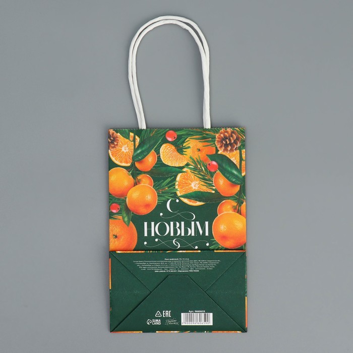 Пакет подарочный новогодний крафтовый «Мандариновое настроение», 15 х 10 х 6 см — Характеристики