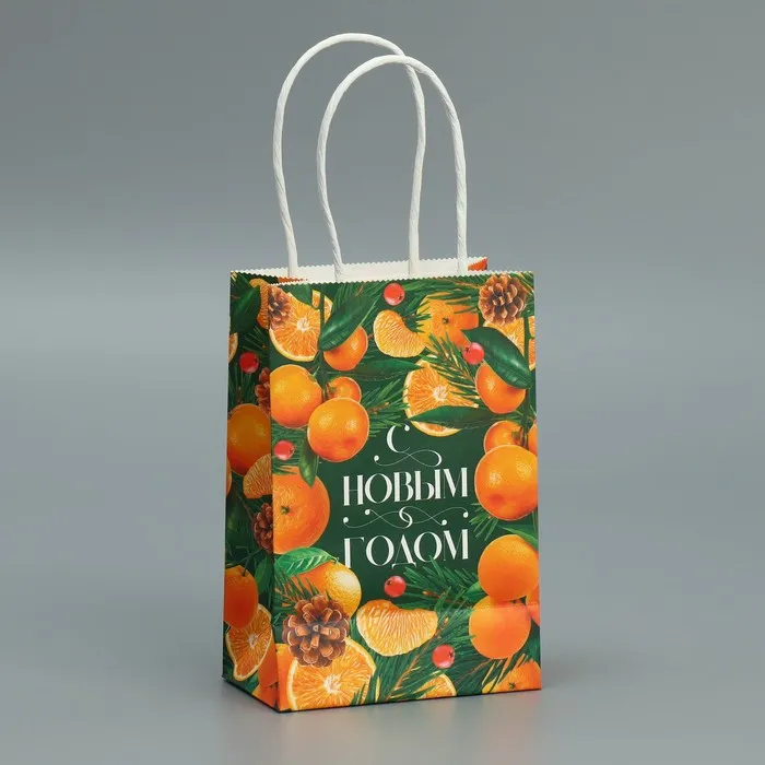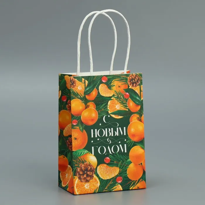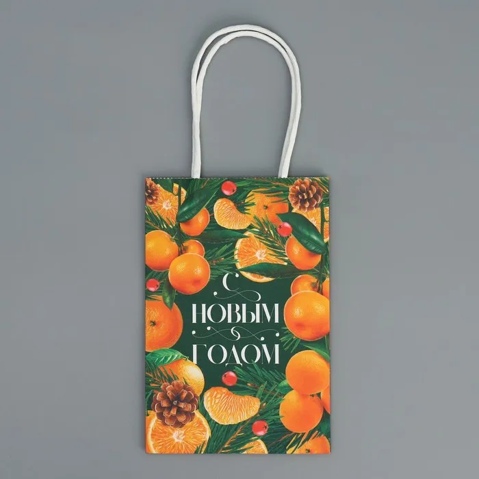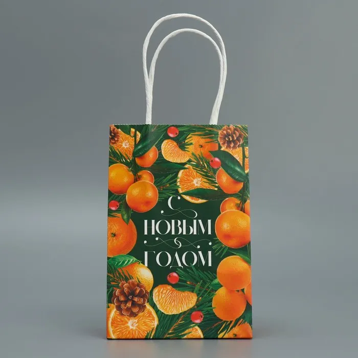 Пакет подарочный новогодний крафтовый «Мандариновое настроение», 15 х 10 х 6 см