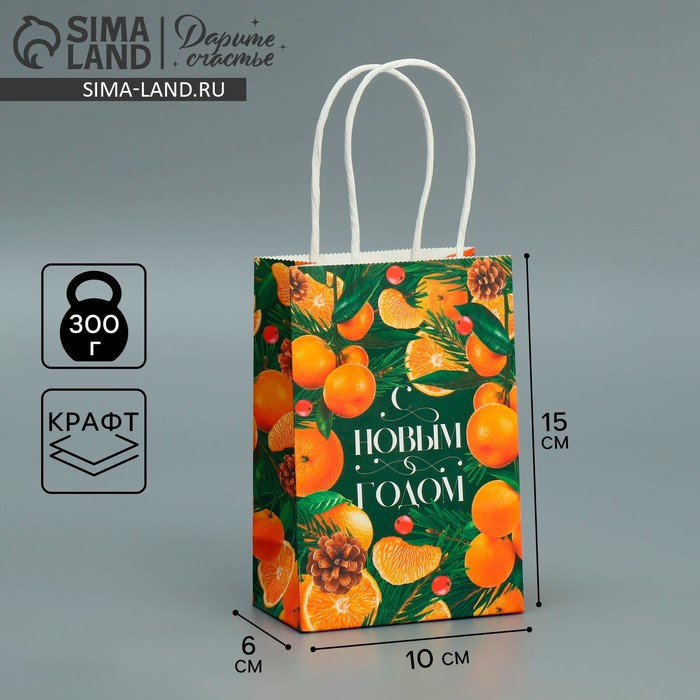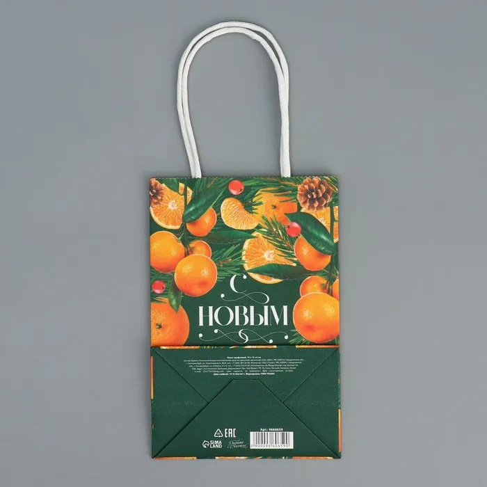 Пакет подарочный новогодний крафтовый «Мандариновое настроение», 15 х 10 х 6 см — Характеристики