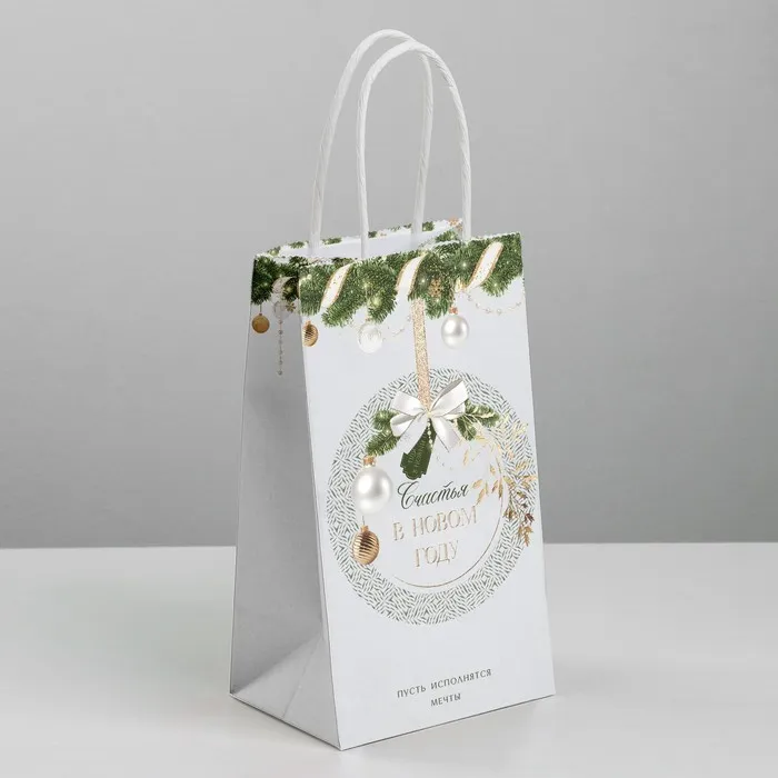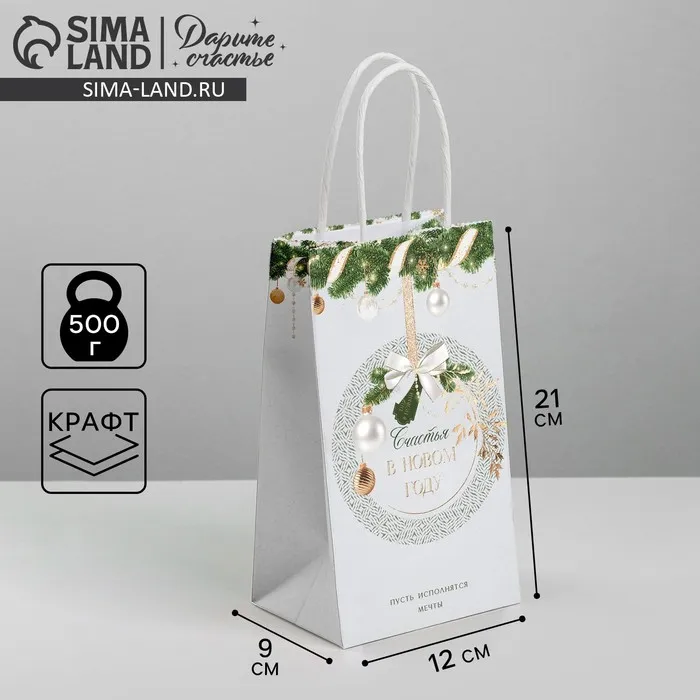 Пакет подарочный новогодний крафтовый «Мечты», 12 х 21 х 9 см — Характеристики