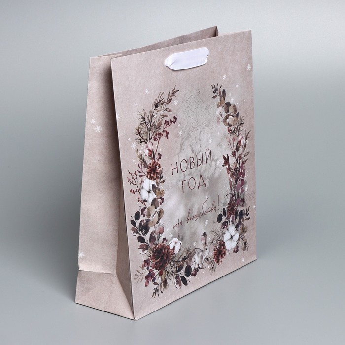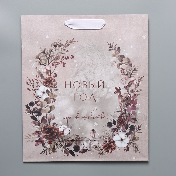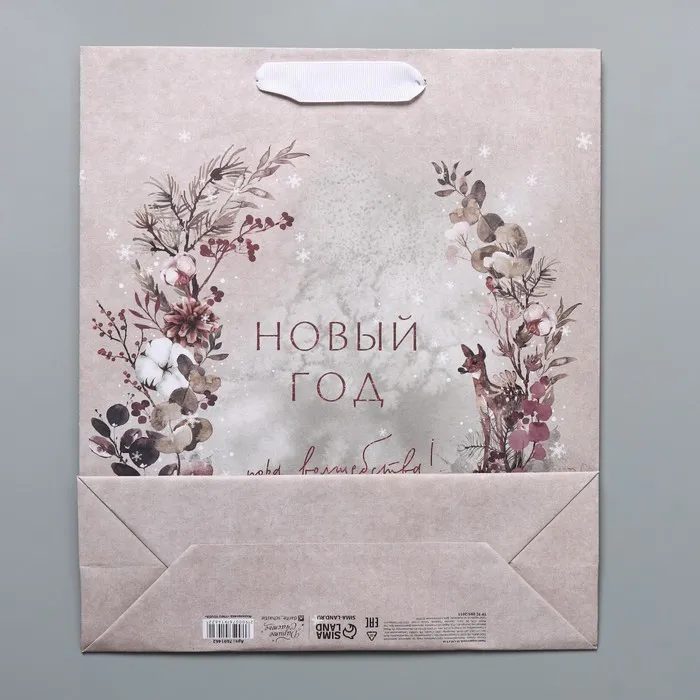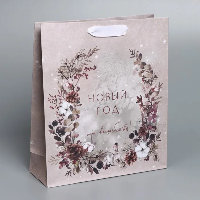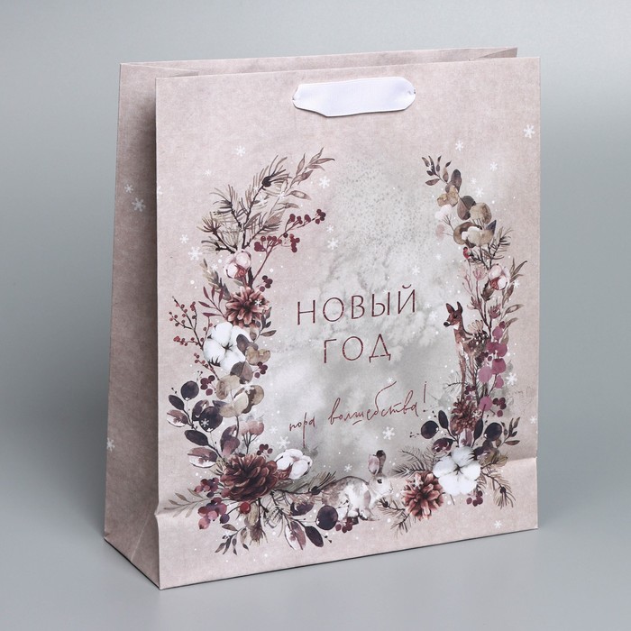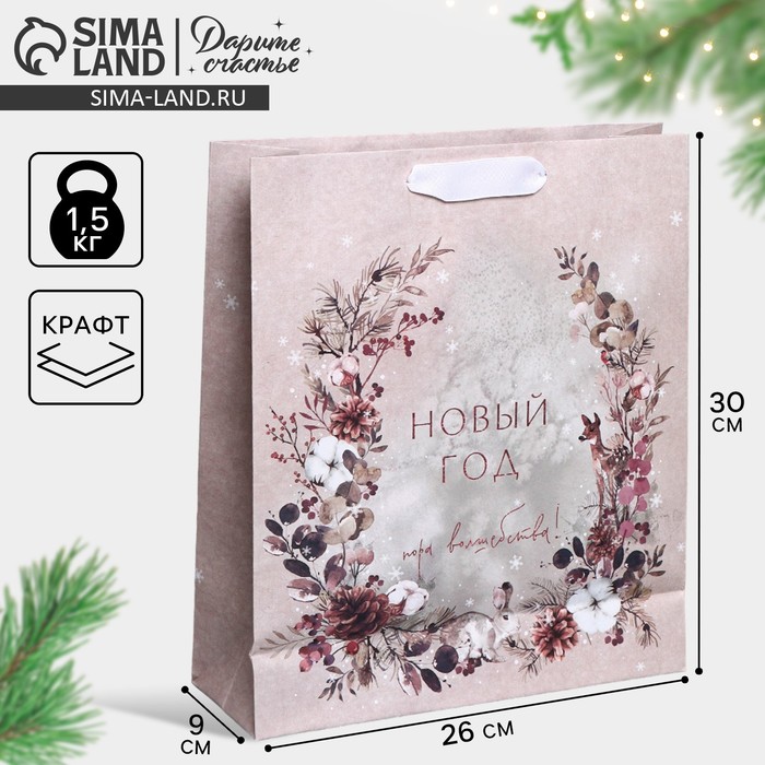 Пакет подарочный новогодний крафтовый «Мир волшебства», M 26 х 30 х 9 см — Характеристики