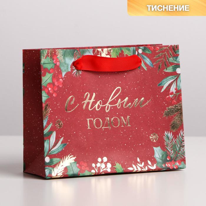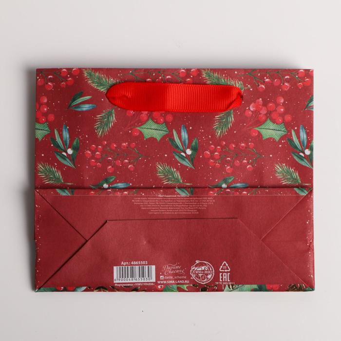 Пакет подарочный новогодний крафтовый «Новогоднее настроение», S 15 х 12 х 5.5 см — Характеристики