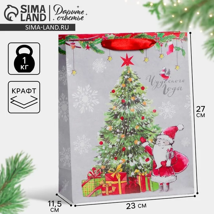 Пакет подарочный новогодний крафтовый «Новогоднего чуда», 23 х 27 х 11.5 см — Характеристики