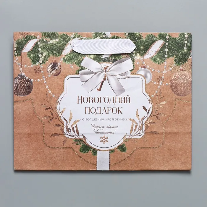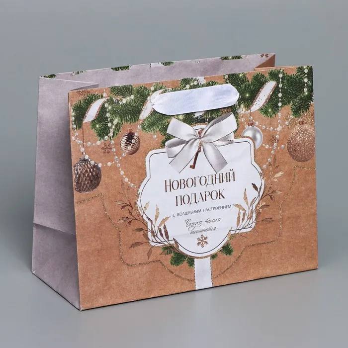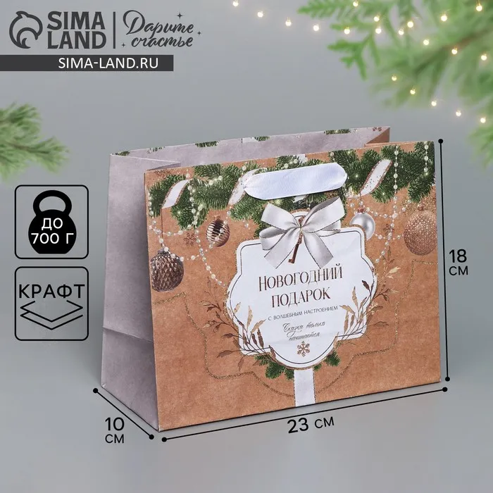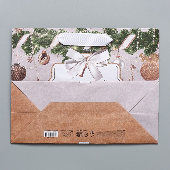 Пакет подарочный новогодний крафтовый «Новогодние игрушки», MS 23 х 18 х 10 см — Характеристики