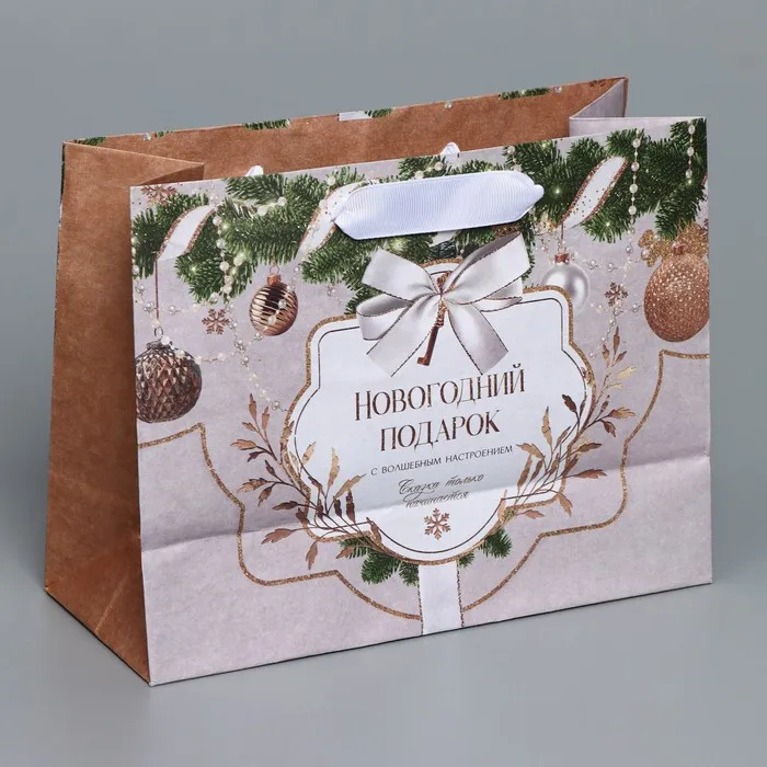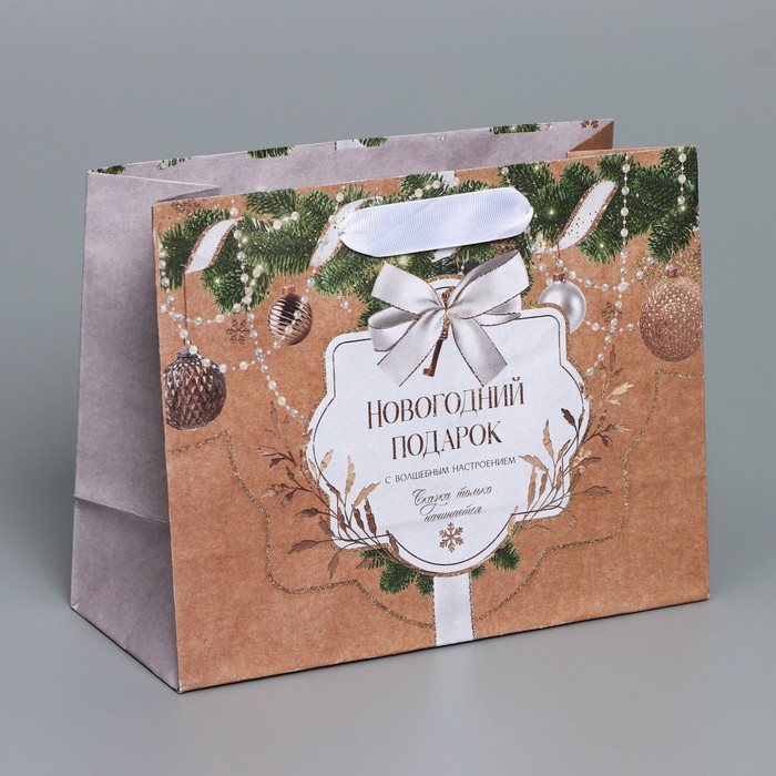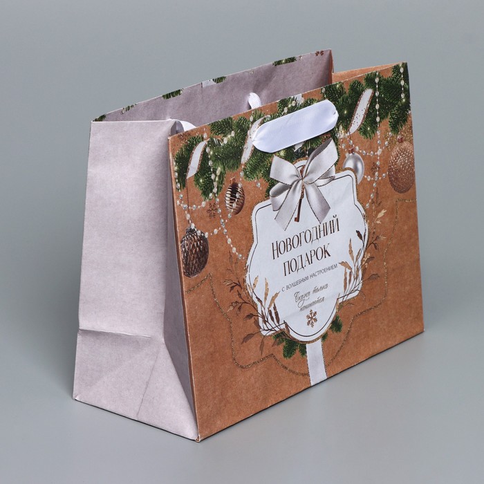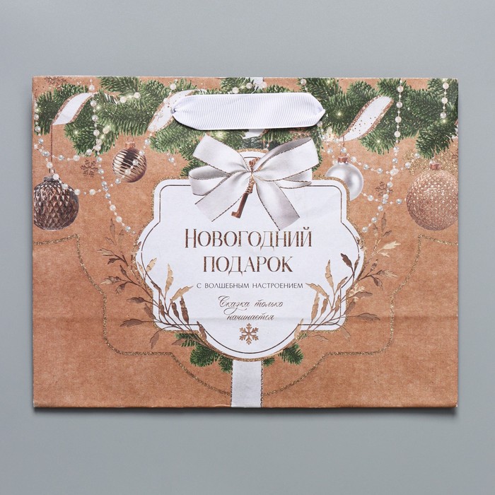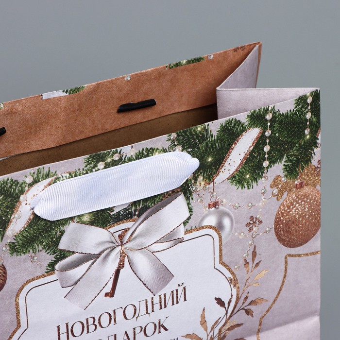 Пакет подарочный новогодний крафтовый «Новогодние игрушки», MS 23 х 18 х 10 см