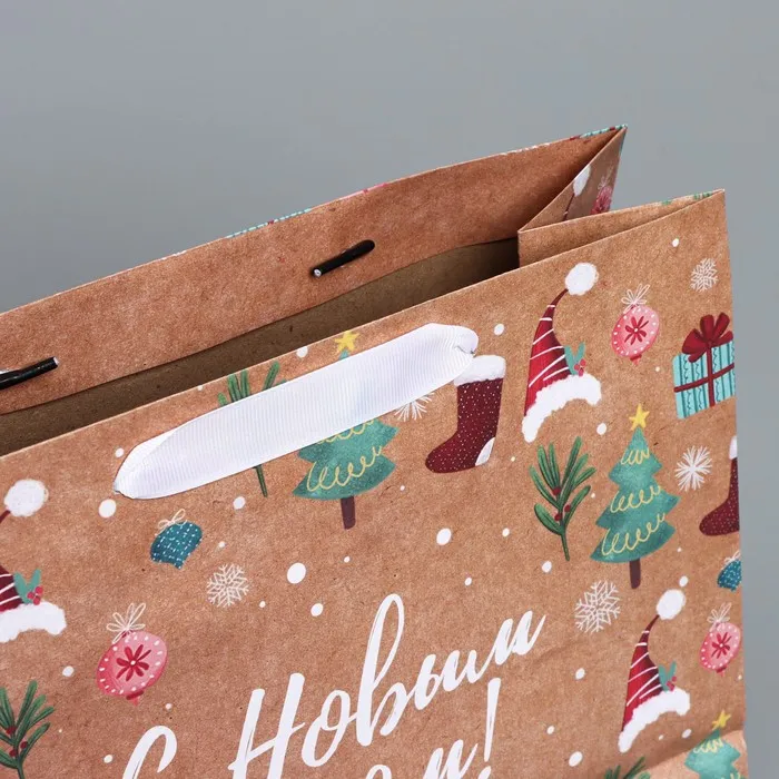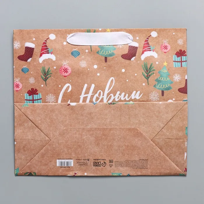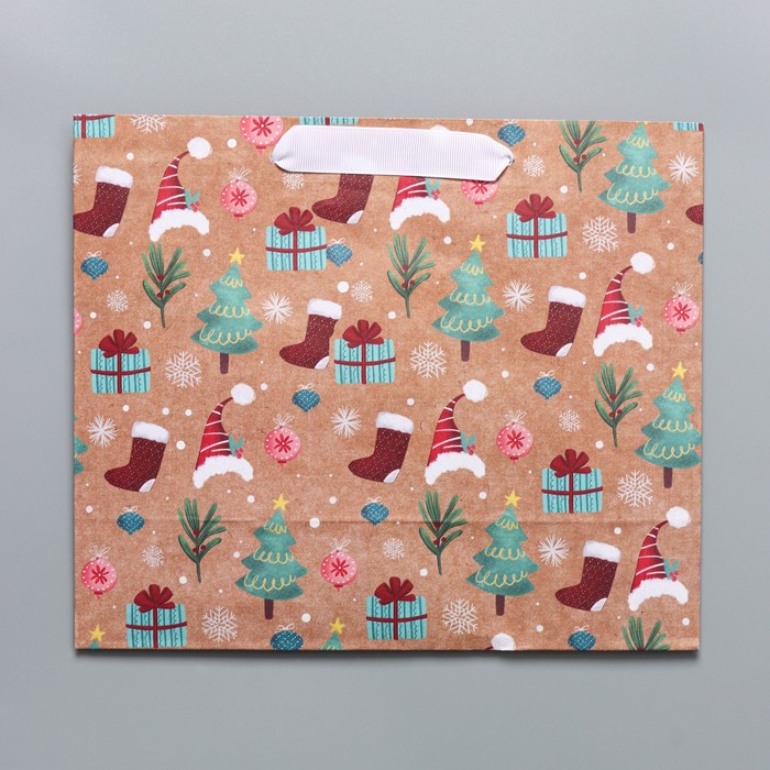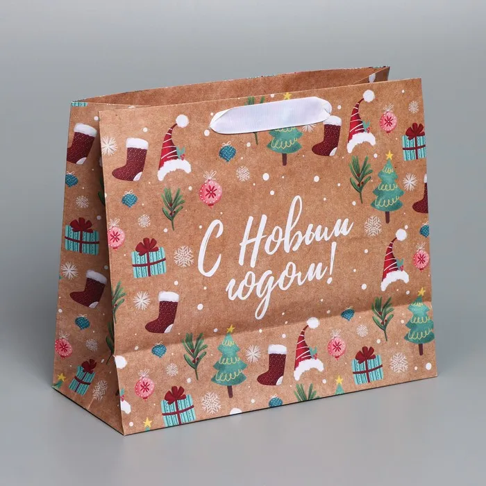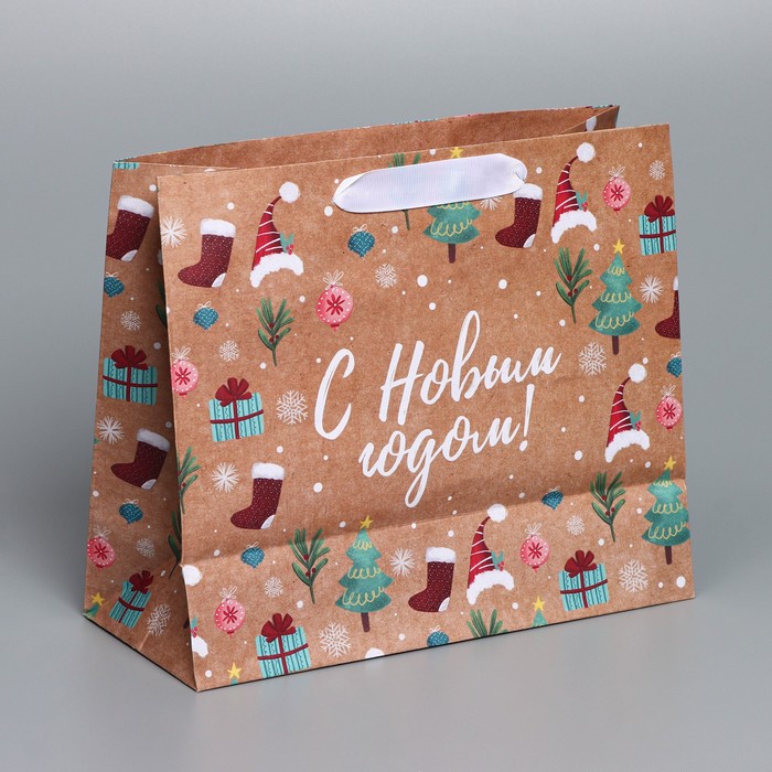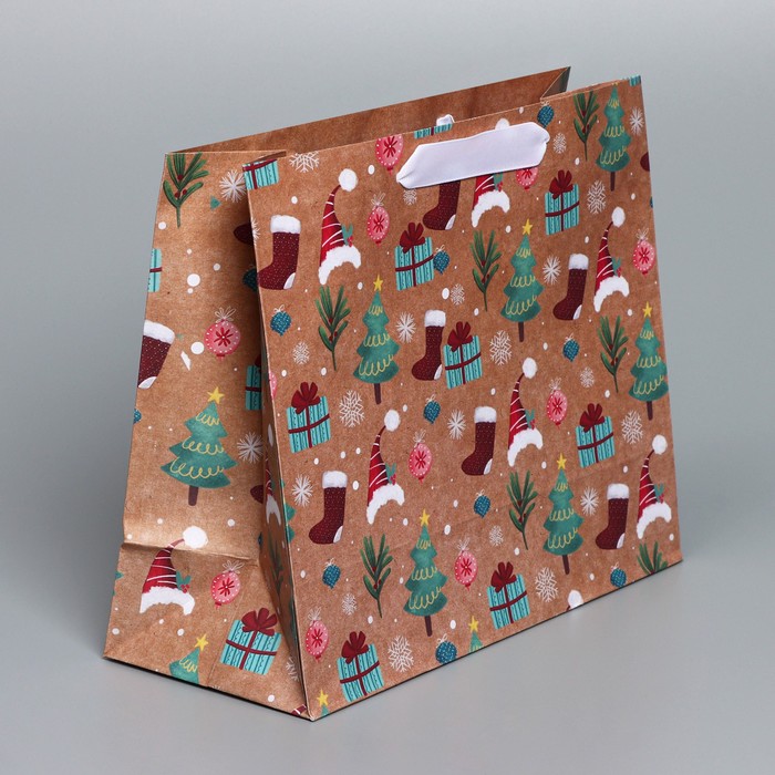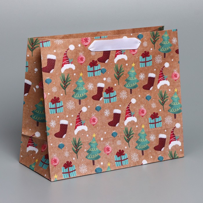 Пакет подарочный новогодний крафтовый «Новогодние подарочки», ML 27 х 23 х 11.5 см — Характеристики