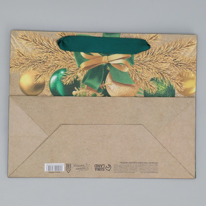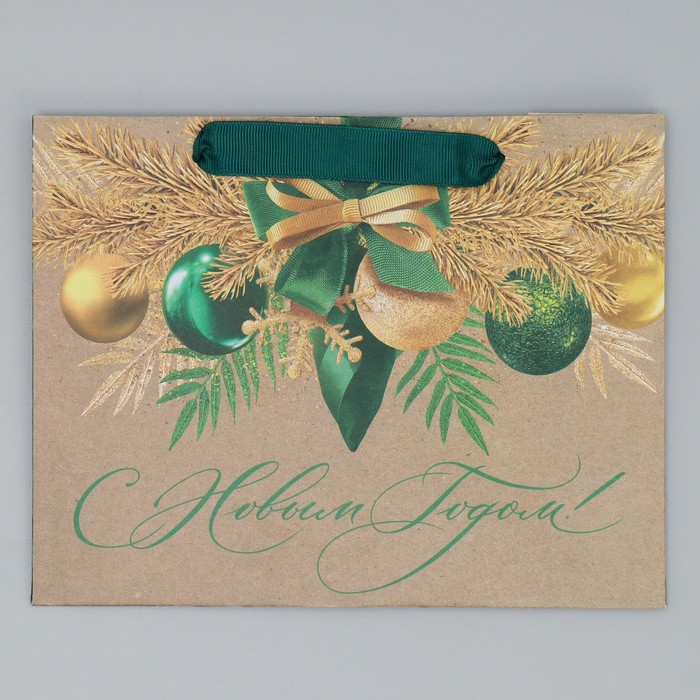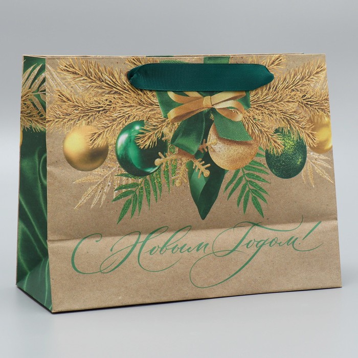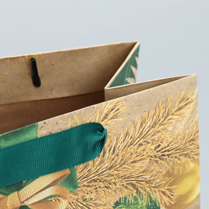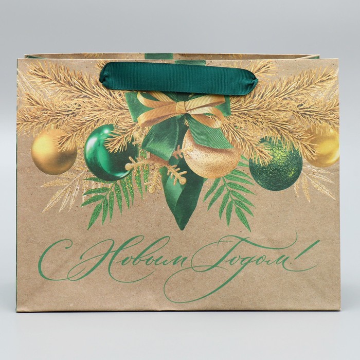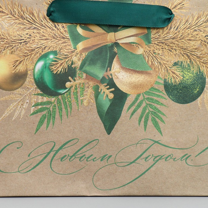 Пакет подарочный новогодний крафтовый «Новогодний изумруд», MS 23 х 18 х 10 см
